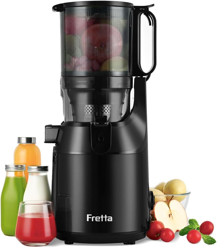 Fretta Entsafter Slow Juicer mit 135mm-1.8L XXL Öffnung,Entsafter Gemüse und Obst,250W MAX Mastizier- für Ganze Früchte,Einfache Reinigung BPA-frei | Tritan Material (Schwarz) | قیمت یورویی 94.99€