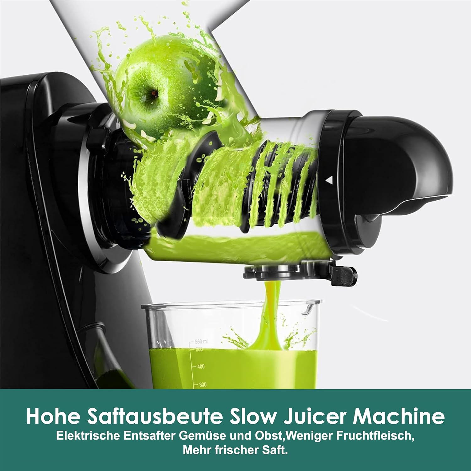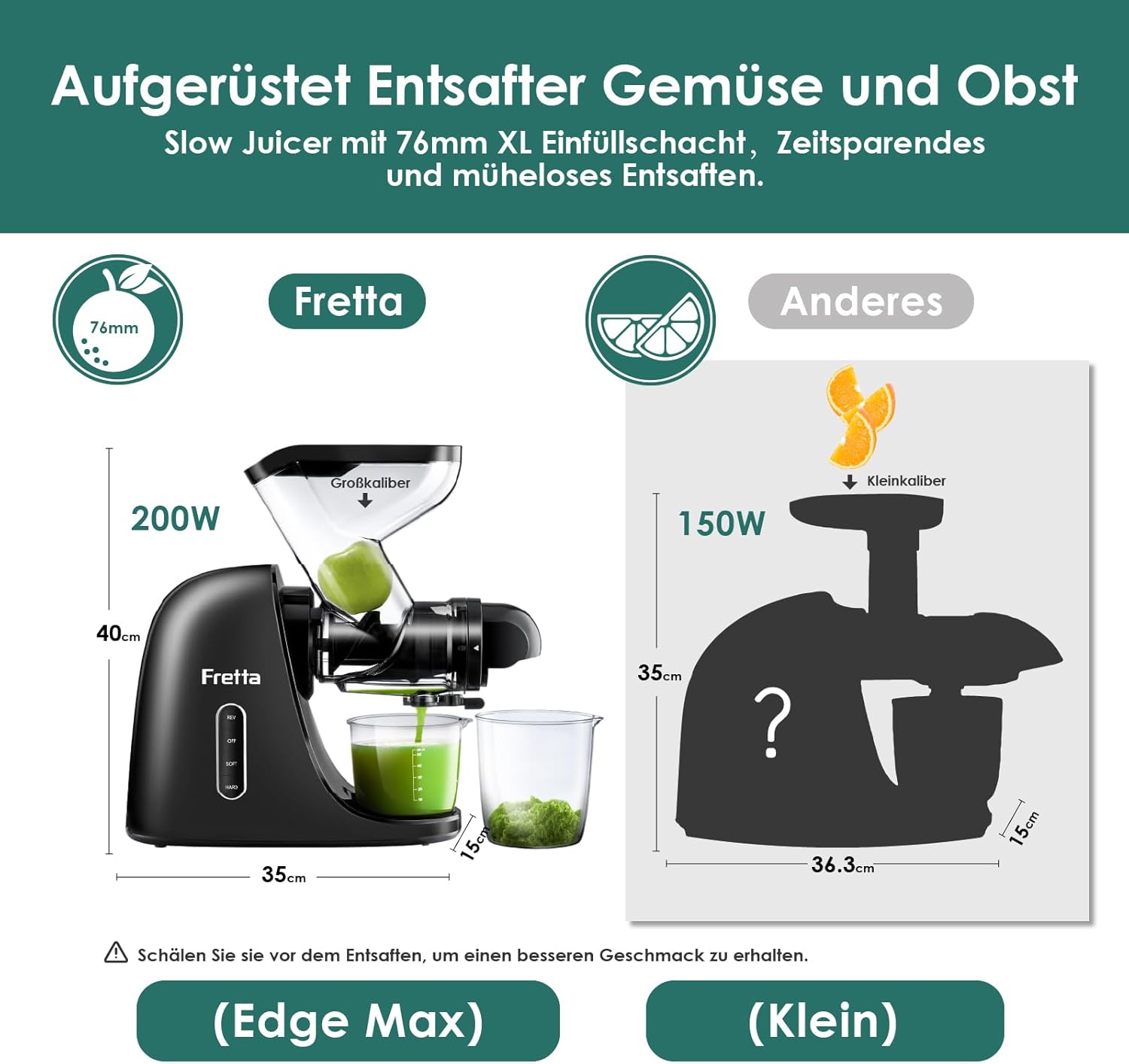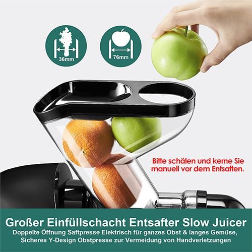 Fretta Slow Juicer Entsafter Gemüse und Obst Juicer Maschine, 200W Obstpresse Elektrisch Saftpresse Sellerie Juice Maker Masticating Kaltpresse 76mm XL Öffnung, Einfache Reinigung Schwarz | قیمت یورویی 79.99€
