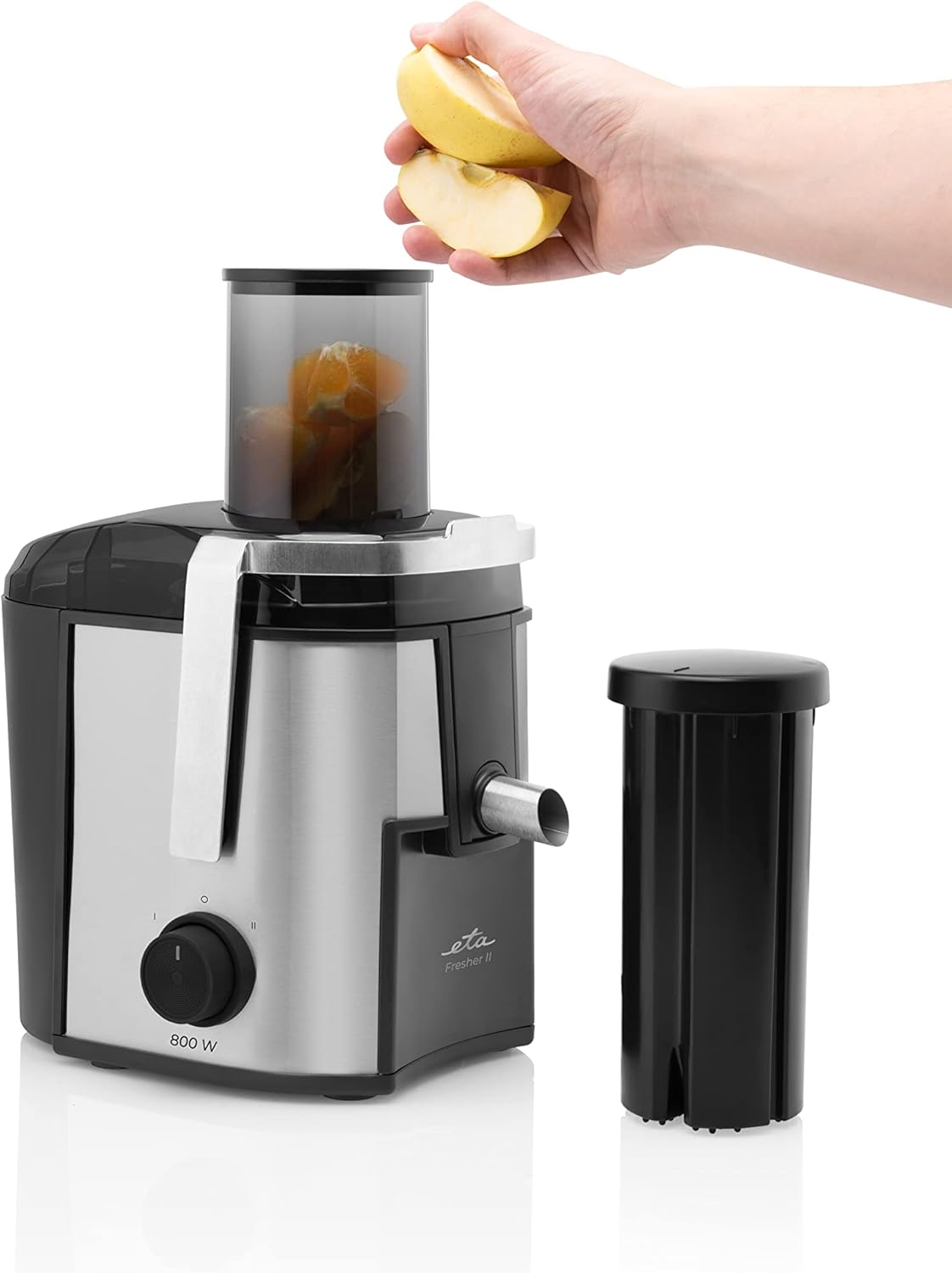 آبمیوهگیری برقی ETA Juicer Fresher II I، ساخته شده از استیل ضد زنگ، ظرفیت پر کردن 85 میلیمتر XXL، دو سرعته، 800 وات، آبمیوهگیری با سیستم ضد چکه