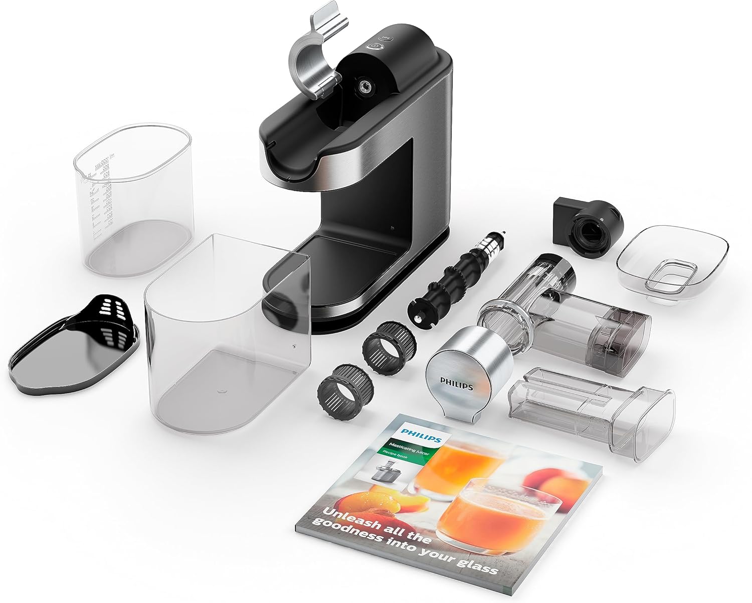 تقویت تغذیه روزانه شما فقط در یک دقیقه: آبمیوه گیری آهسته مناسب برای عصاره آب سبزیجات و میوه تا 90 درصد از تمام مواد مغذی* 1 لیتر آب میوه در هر پاس: از ظرف با ظرفیت حداکثر 1 لیتر استفاده کنید یا مستقیماً از آبمیوه گیری با پرس سرد با موتور 200 وات قابل اعتماد استفاده کنید. تمیز کردن در 60 ثانیه: طراحی منحصر به فرد بدون غربال و با فناوری QuickClean برای تمیز کردن سریع - تمام قطعات قابل شستشو در ماشین ظرفشویی هستند و به راحتی قابل جدا شدن و تمیز کردن هستند. طراحی زیبا: طراحی شیک و مدرن با قطعات کاملاً یکپارچه برای پیشخوان آشپزخانه شما - جمع آوری و راه اندازی آسان با برنامه HomeID ما نوشیدنی های سالم، خانگی و آبمیوه بسازید - دستور العمل های الهام بخش متناسب با شما را با دستورالعمل های گام به گام کشف کنید