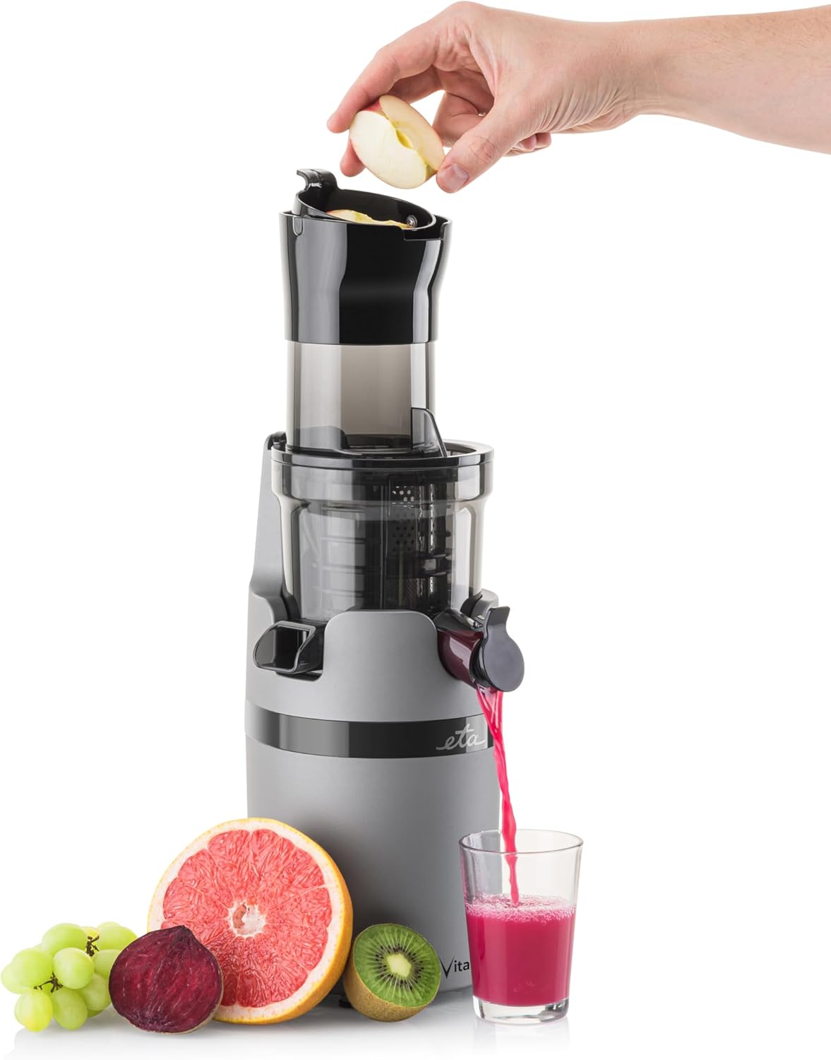ETA Entsafter Vitalic I Slow Juicer I 200 W I 75-mm Öffnung I Qualitätsentsaftung von Obst, Gemüse, Kräutern und Zubereitung von RAW-Lebensmitteln I REVERSE + DripStop-Funktion