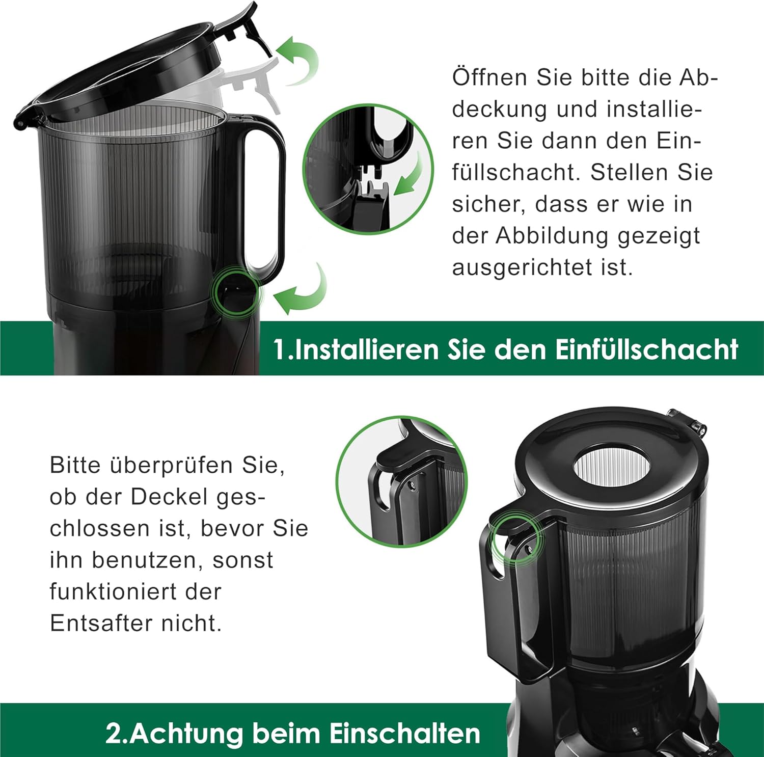 [108 mm Einfüllöffnung & 1 L Großvolumen]: Der Fretta Entsafter für Gemüse und Obst verfügt über eine große Einfüllöffnung. Ganze Äpfel, Gurken, Karotten und anderes Obst/Gemüse können ohne Vorzuschneiden schnell verarbeitet werden. Dies beschleunigt den Entsaftungsprozess, vereinfacht die Handhabung und steigert die Effizienz im Alltag, perfekt für den Haushaltsbedarf. [BPA-FREI & Tritan-Material]: Wirklich BPA-frei: Der Fretta Slow Juicer besteht aus BPA-freiem Tritan-Material der Stufe 1 für Babynahrung, das die Sicherheit und Reinheit Ihres Saftes garantiert. Mit seiner hervorragenden Haltbarkeit wird der Fretta Entsafter Ihr langjähriger Begleiter. Er ist die ideale Wahl für alle, die einen gesunden Lebensstil pflegen. [Kaltpress-Technologie & 3-fach Filtersystem]: Fretta Kaltpress-Entsafter nutzt optimierte Kaltpress- und Slow Juicing Technologie. Kombiniert mit einem leistungsstarken Motor und einem 3-fach Filtersystem stellt er sicher, dass jeder Tropfen Saft aus Obst und Gemüse extrahiert wird. Er überwindet "Nahrungsbarrieren", bewahrt maximale Nährstoffe, reduziert die Oxidation und deckt Ihren täglichen Nährstoffbedarf. [Rückflussfunktion & Sicherheitsdesign]: Die Rückflussfunktion des Fretta Entsafters löst Verstopfungen mühelos. Bei Ansammlungen von Fruchtfleisch während des Entsaftens genügt ein Druck auf die Rücklauftaste, um die Drehrichtung automatisch umzukehren und die Blockade schnell zu beseitigen. Automatischer Stopp beim Öffnen des Deckels und ein integrierter Überhitzungsschutz verhindern Unfälle während der Nutzung. [Einfache Reinigung & Integriertes Design]: Der Fretta Gemüse Obstentsafter verfügt über ein integriertes, nahtloses Design. Kein Verspritzen von Saft, ein tropffreier Auslauf, schnelle Reinigung und Montage. Der rutschfeste Standfuß gewährleistet Stabilität während desBetriebs. Produktionsstufennachdienst: Erstklassiger Kundensupport und lebenslange technische Unterstützung werden garantiert. | قیمت یورویی : 89.99€