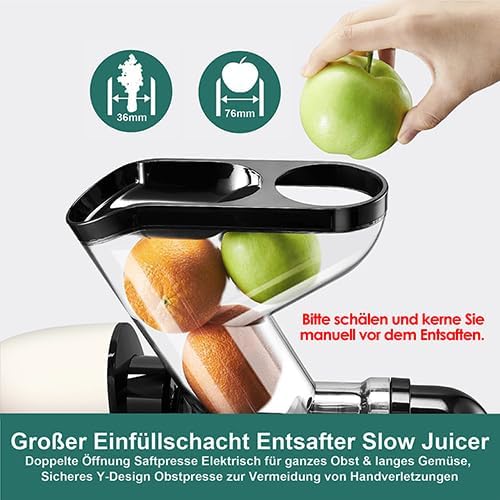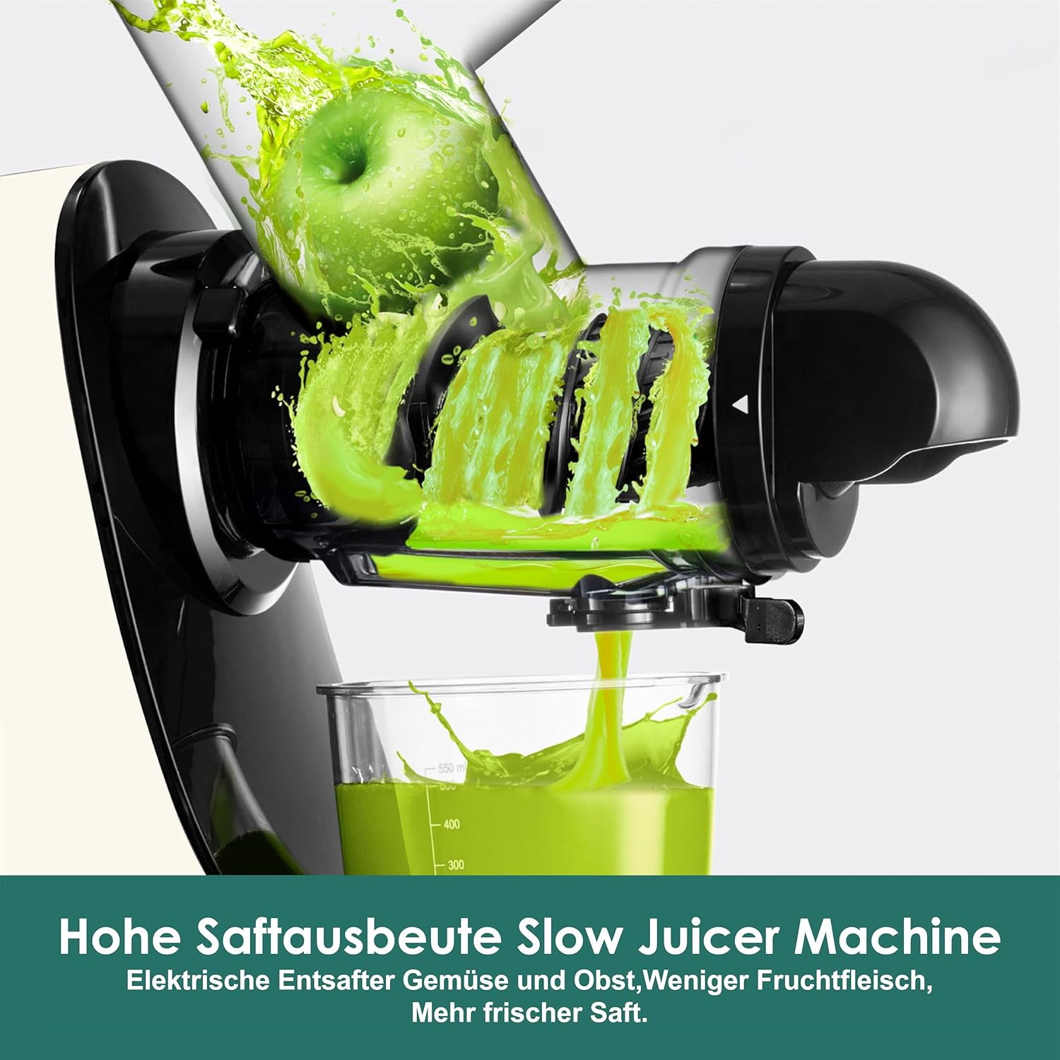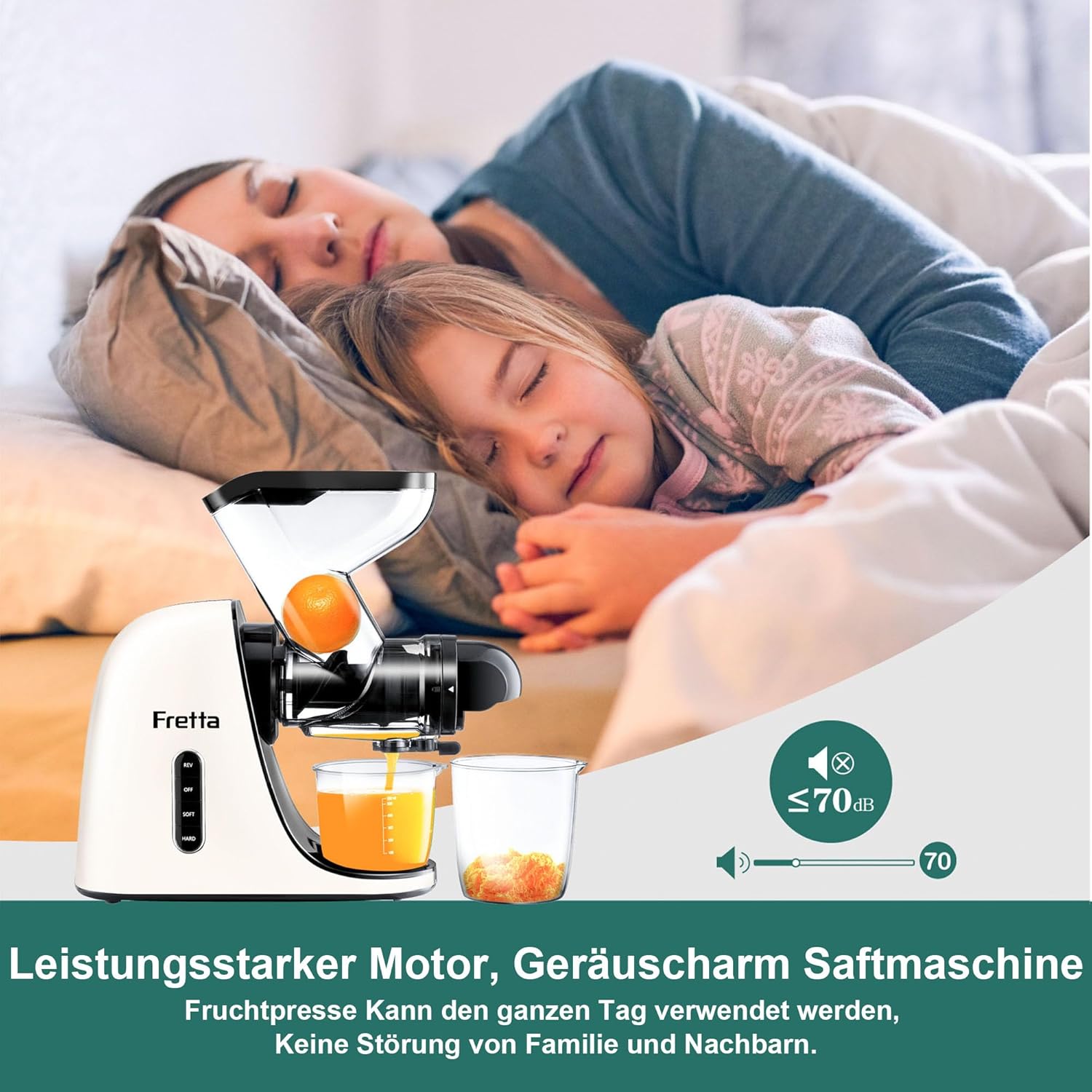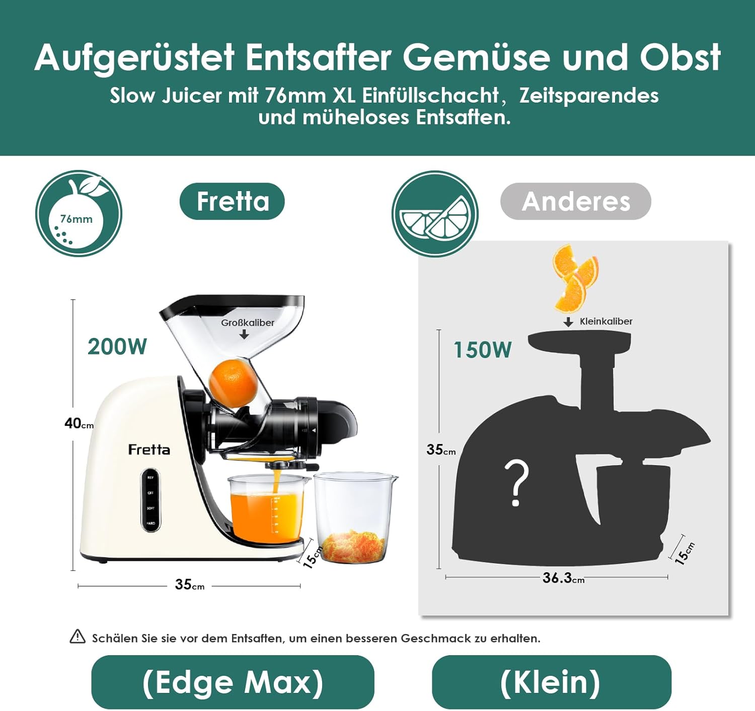 Fretta Slow Juicer Entsafter Gemüse und Obst Saftmaschine Silber, 200W Saftpresse Elektrisch Obstpresse Sellerie Juice Machine, 76mm XL Einfüllschacht, BPA-Frei, Leicht zu reinigen White Cremeweiß | قیمت یورویی 79.99€