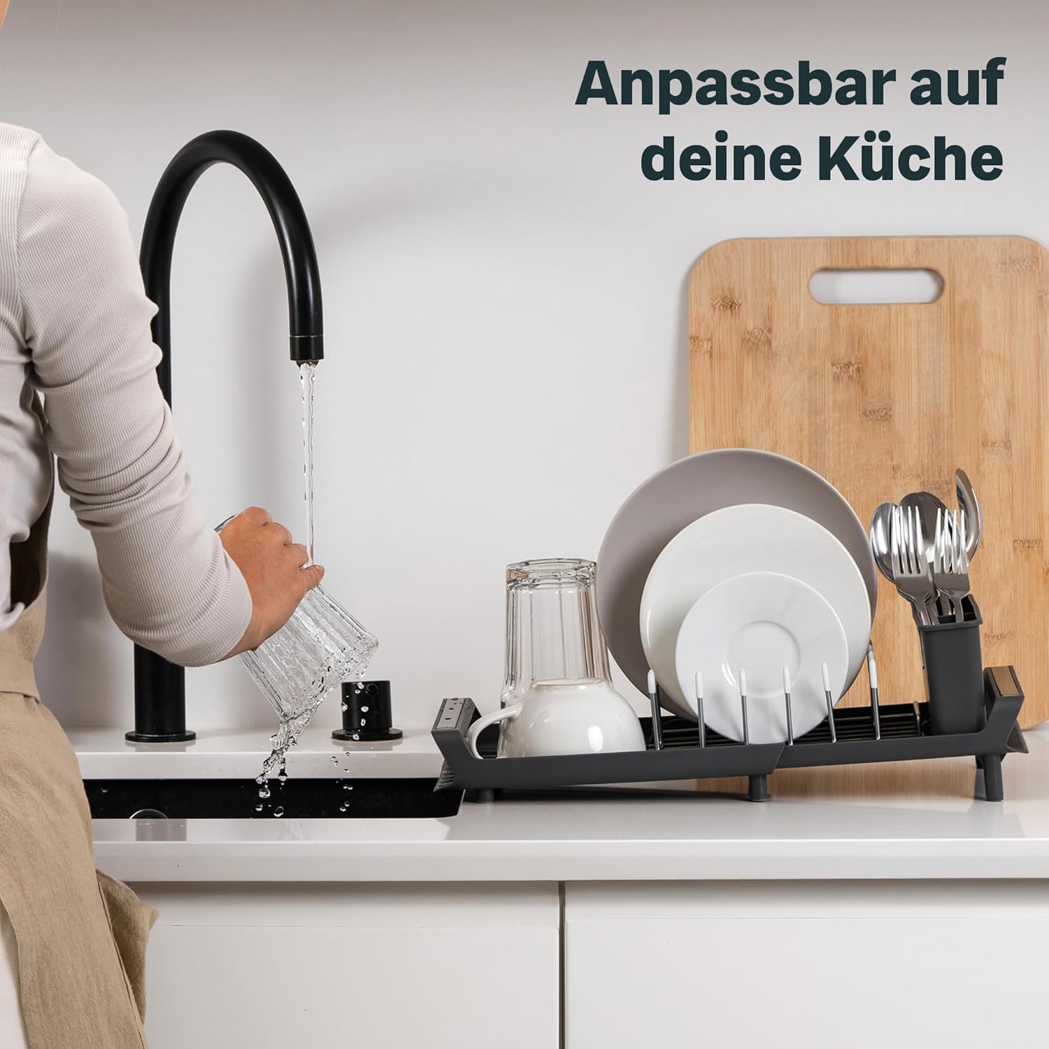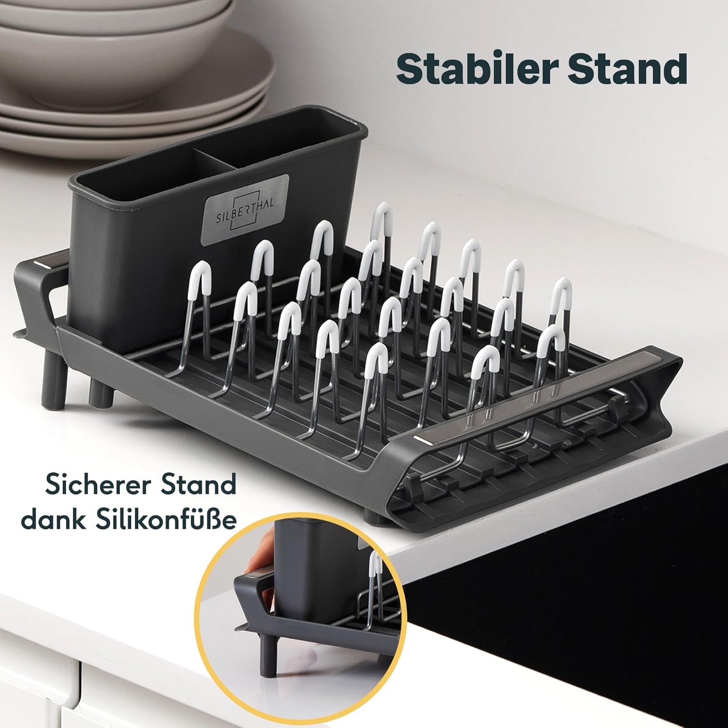 SILBERTHAL Geschirr Abtropfgestell Klein - Rostfrei - Mit Abtropfschale, Geschirrkorb, Besteckkasten - Kunststoff - Verbesserte Version Ausziehbares Abtropfgestell Klein