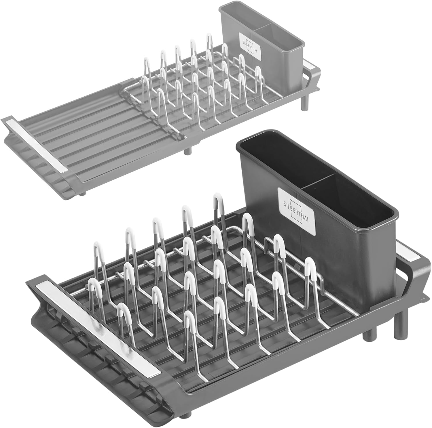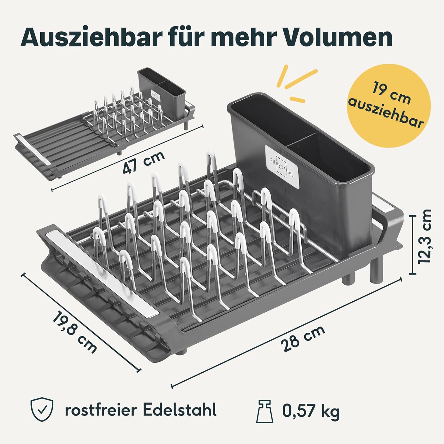 SILBERTHAL Geschirr Abtropfgestell Klein - Rostfrei - Mit Abtropfschale, Geschirrkorb, Besteckkasten - Kunststoff - Verbesserte Version Ausziehbares Abtropfgestell Klein | قیمت یورویی 29.95€