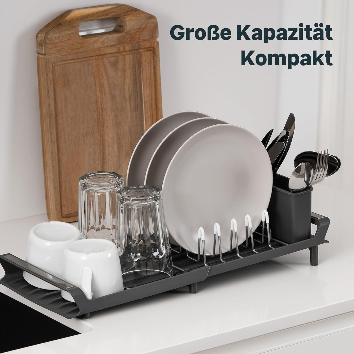 ✔ Platzsparend für die kleine Küche. Es können Teller, Schüsseln, Gläser sowie Besteck in der Besteckablage schnell getrocknet werden. Die Silikon Aufsätze schützen das Geschirr vor Kratzern. ✔ Praktischer Wasserablauf. Durch die rechteckige Form passt das kleine Trockengestell hervorragend neben das Spülbecken und das Restwasser läuft ab. ✔ Hygienisch Sauber. Dabei bleibt die Küchenfläche trocken und sauber und du gewinnst an Zeit, um dich um andere Dinge zu kümmern. ✔ Das robuste Abtropfgestell besteht aus einer rostfreien Edelstahl-Halterung und einer Kunststoffschale (BPA-frei). Die Anti-Rutsch-Füße sorgen für einen festen Stand. ✔ Einfach sauber zu halten. Alle Teile können auseinandergebaut und von Hand gespült und abgewischt oder in der Spülmaschine gereinigt werden. | قیمت یورویی : 29.95€