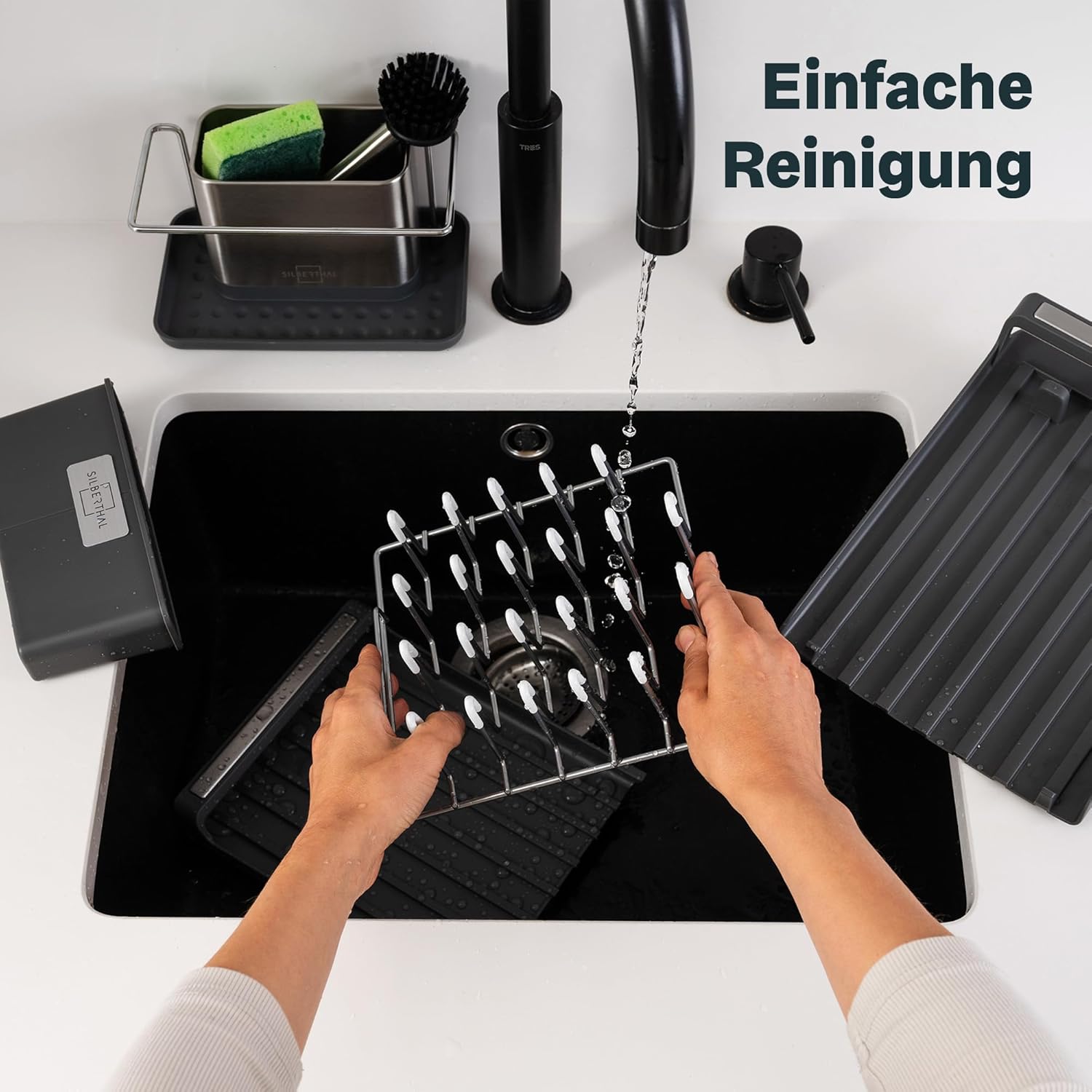 آبچکان کوچک سیلبرتال - استیل ضد زنگ - با سینی چکه، قفسه ظرف، سینی کارد و چنگال - پلاستیک - نسخه بهبود یافته آبچکان کوچک قابل افزایش