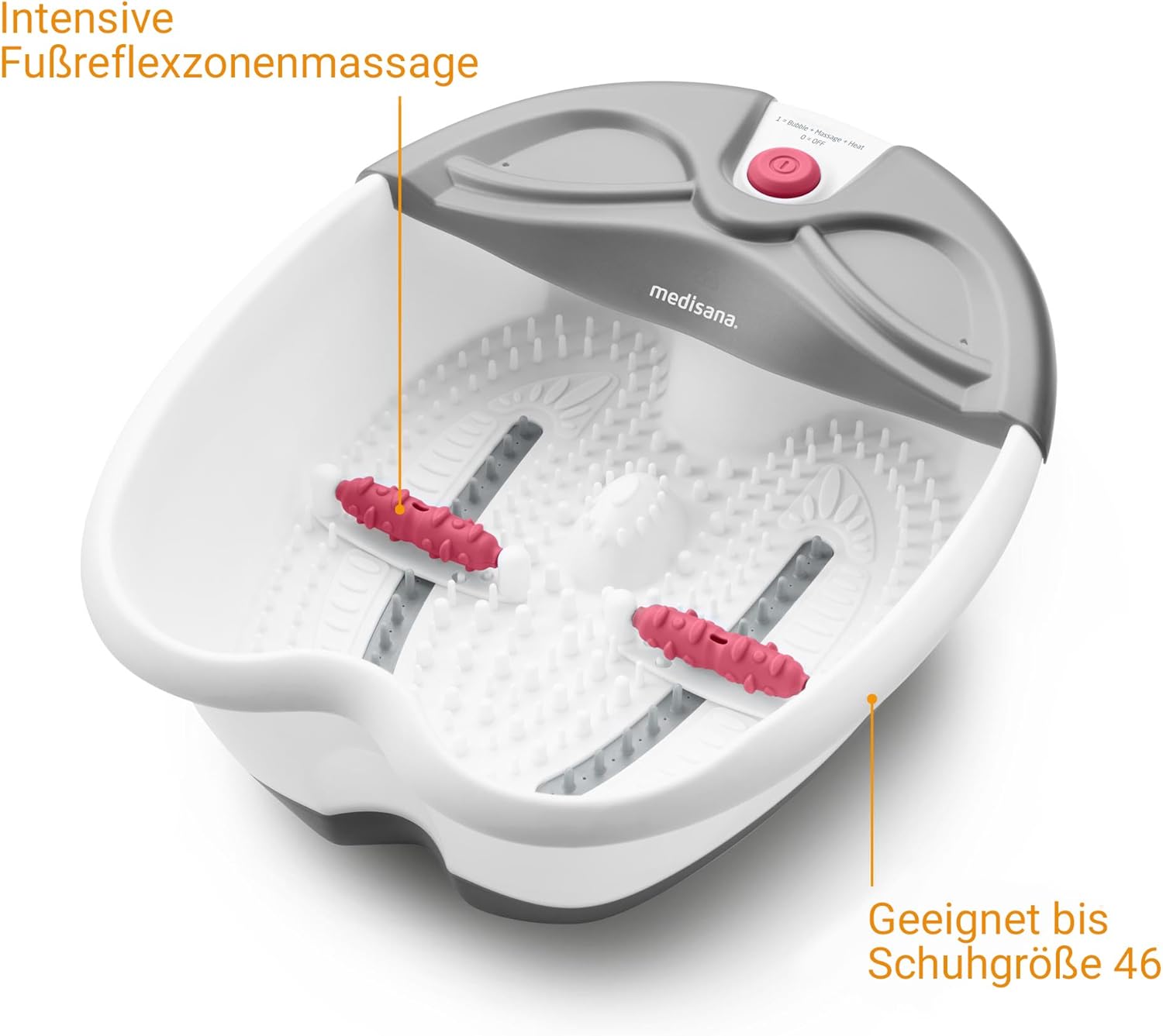 medisana FS 300 Fußsprudelbad mit Fußreflexzonenmassage, elektrisches Fußbad, Warmhaltefunktion, Fußbad mit Massage und Heizung, für große Füße und eine angenehme Fußmassage Sprudelmassage | قیمت یورویی 36.44€