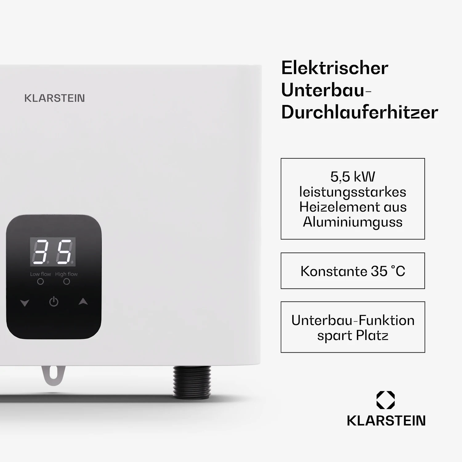 آبگرمکن برقی فوری Klarstein Blaze Flow یک راه حل جمع و جور و کارآمد برای تأمین آب گرم مداوم است. این آبگرمکن فوری زیر پیشخوان با داشتن یک المنت گرمایشی آلومینیومی ریختهگری شده، گرمایش سریع و قابل اعتمادی را تضمین میکند. با خروجی ۵.۵ کیلووات و ولتاژ ۲۳۰ ولت، برای استفاده خانگی در جایی که فضا محدود است اما به یک منبع آب گرم قابل اعتماد نیاز است، ایدهآل است. این دستگاه آب را تا دمای ثابت ۳۵ درجه سانتیگراد گرم میکند و آن را برای استفاده روزمره مانند شستن دست و کارهای نظافتی عالی میکند. به لطف طراحی شیک و وزن سبک، میتوان آن را به راحتی زیر سینک ظرفشویی نصب کرد و فضای ارزشمندی را در آشپزخانه یا حمام ذخیره کرد. علاوه بر این، آبگرمکن برقی فوری Klarstein Blaze Flow نیازی به باتری ندارد و نگهداری و بهرهبرداری را ساده میکند. این آبگرمکن فوری انتخابی عالی برای هر کسی است که به دنبال یک راه حل کم مصرف و کم جا برای نیازهای آب گرم خود است.