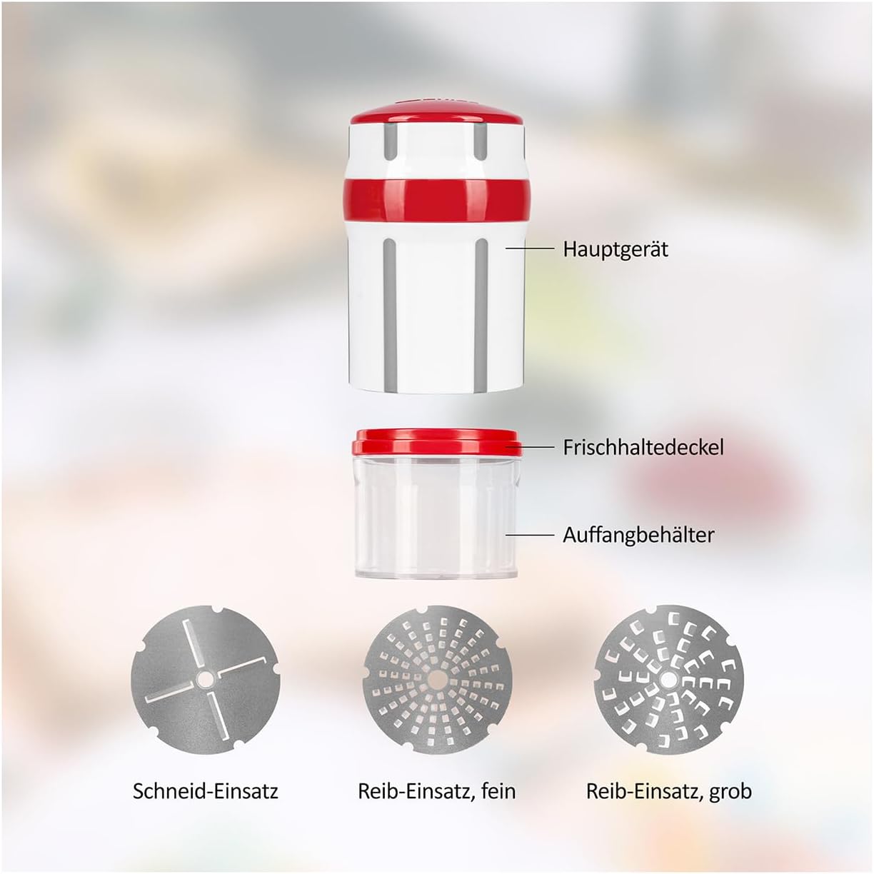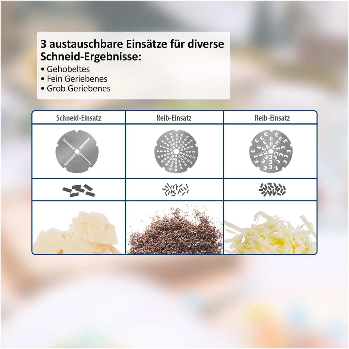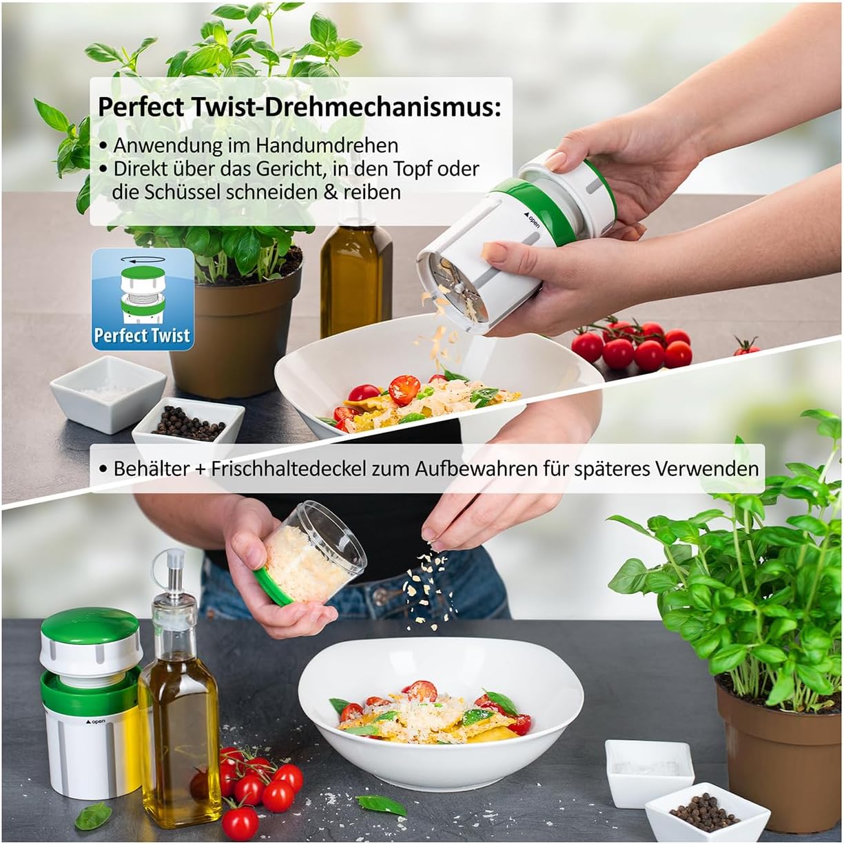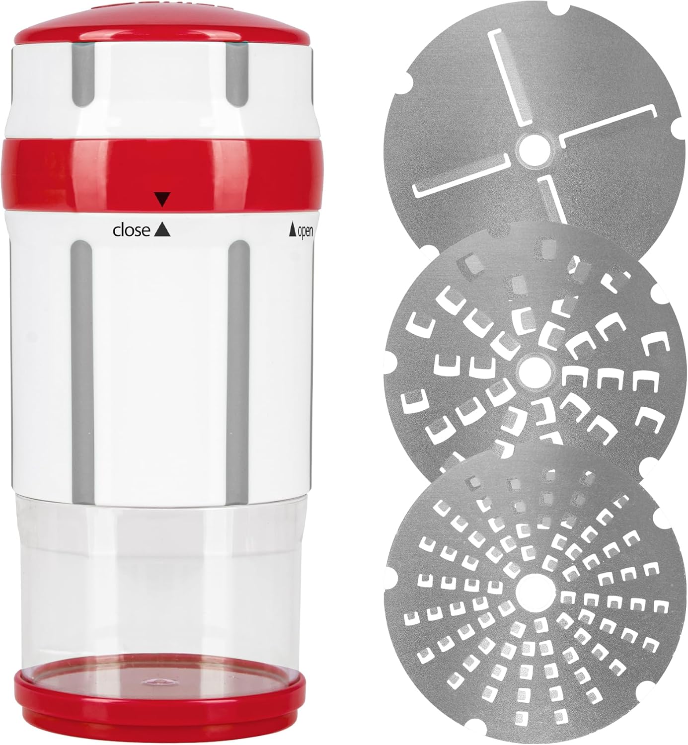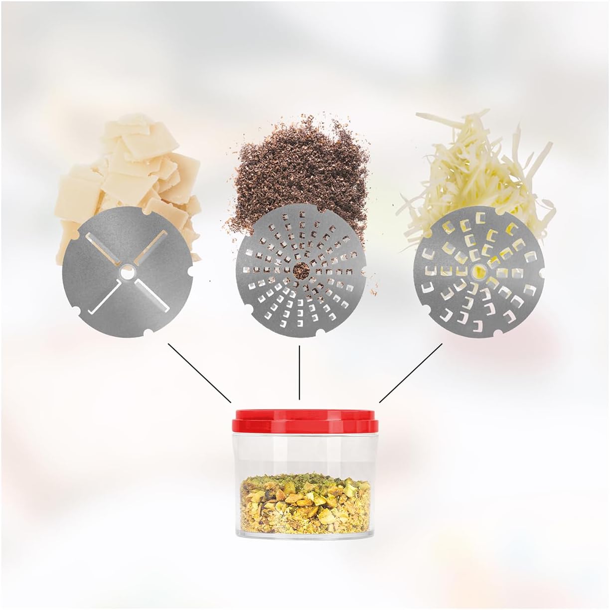 Gewürzmühle mit absoluter Sicherheit: Die Finger kommen nicht in Kontakt mit den Klingen Küche Reibe für Käse und Gewürze - Extra-scharfe Edelstahl-Klingen in G-NOX-Qualität Einsätze direkt im Hauptgerät aufbewahren Praktischer Frischhaltedeckel zum Verschließen des Auffangbehälters – ideal zum Frischhalten, Aufbewahren und Transportieren Perfekt zum Verarbeiten von Käse, Nüssen, Schokolade, Gewürzen und mehr | قیمت یورویی : 29.94€
