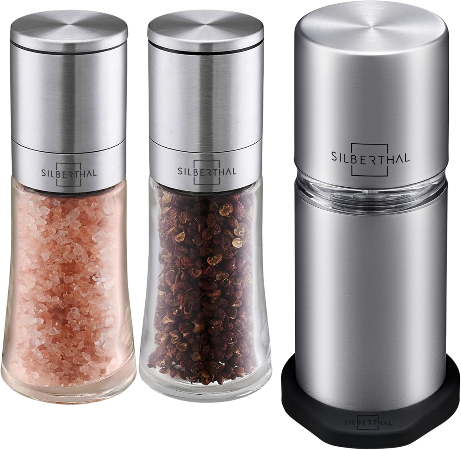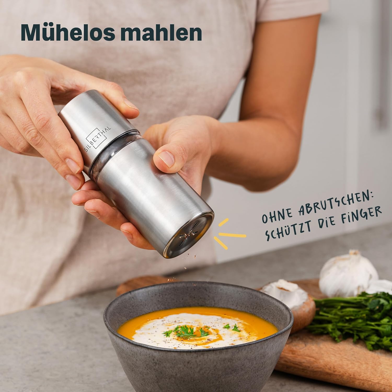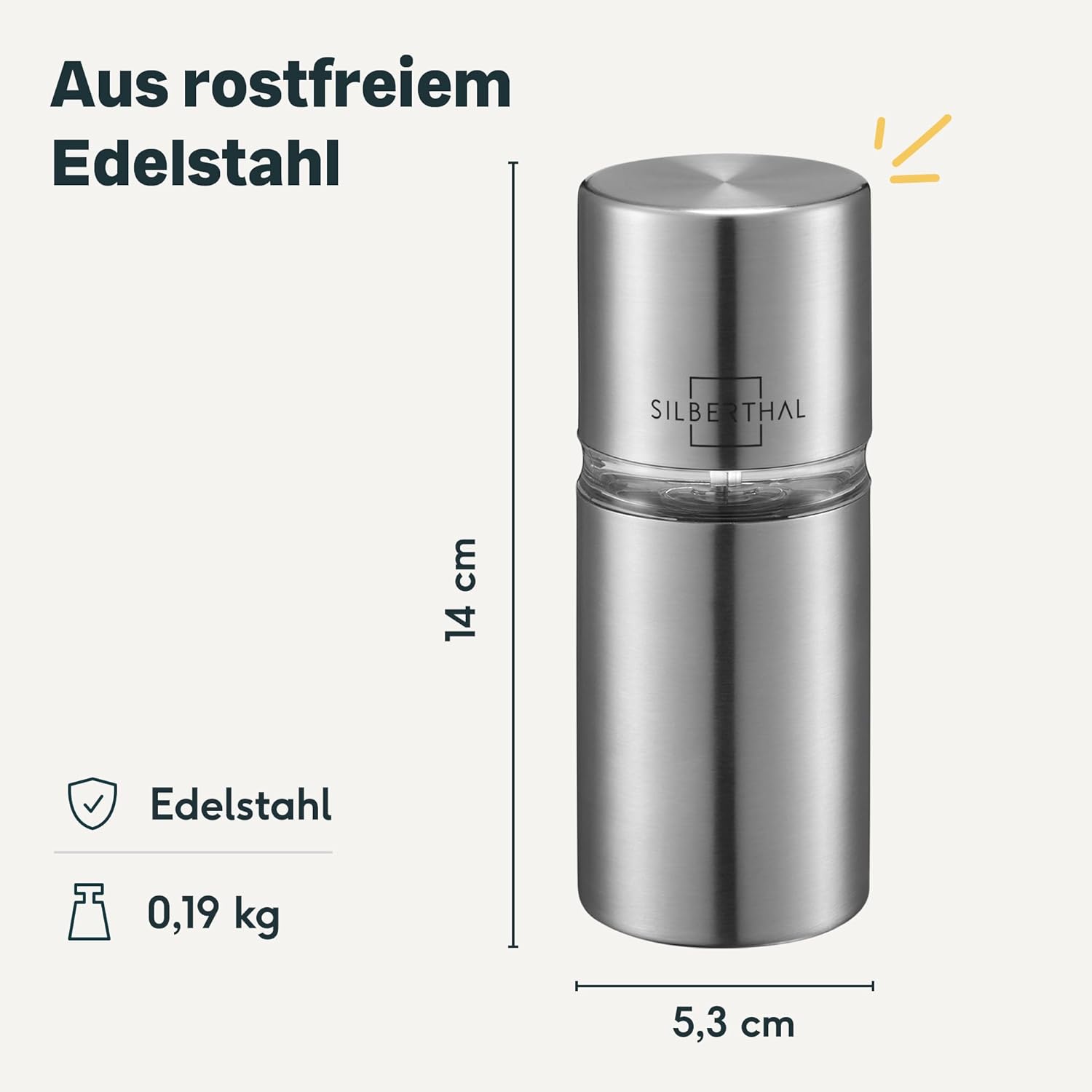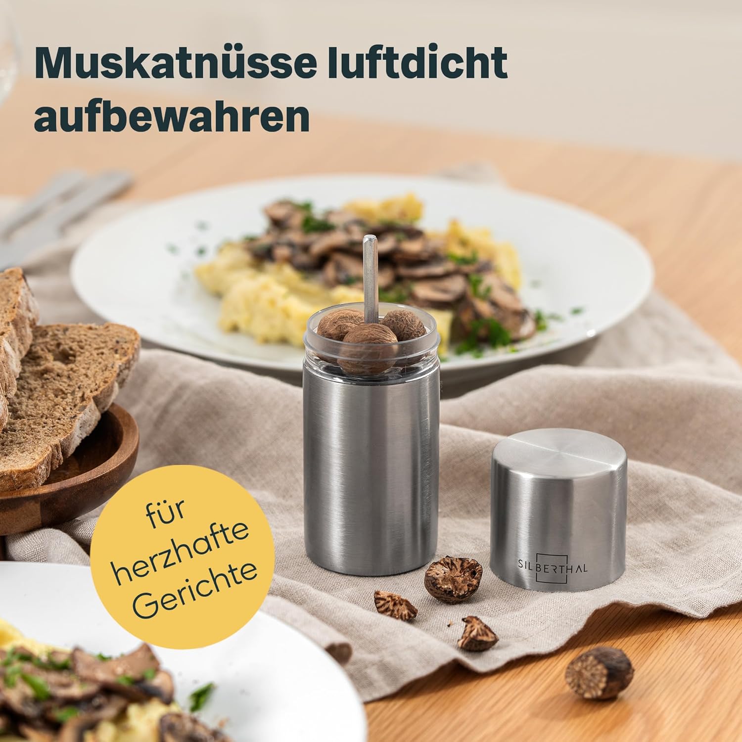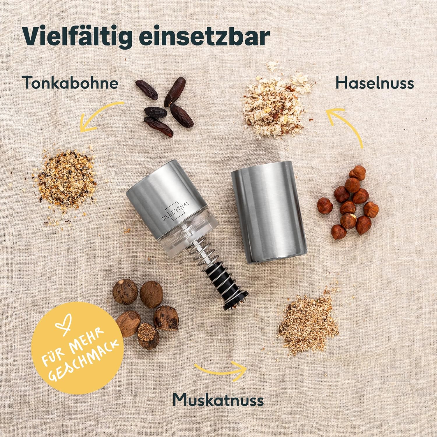 SILBERTHAL Gewürzmühlen Set mit einstellbarem Mahlgrad - Edelstahl - Muskatnuss Reibe mit Salzmühle und Peffermühlenset - Muskatmühle | قیمت یورویی 34.95€