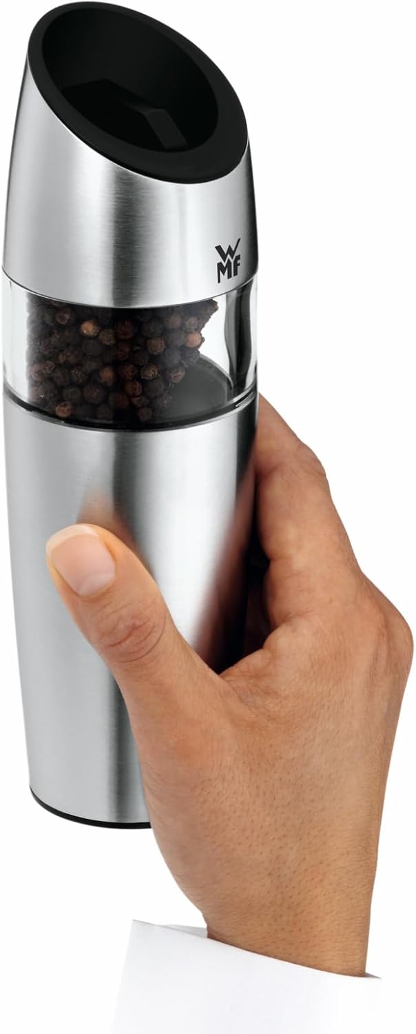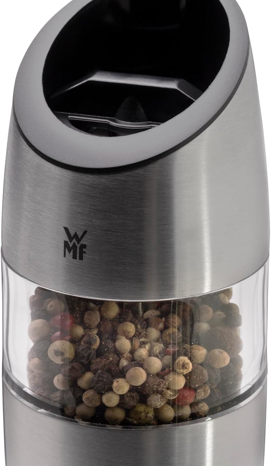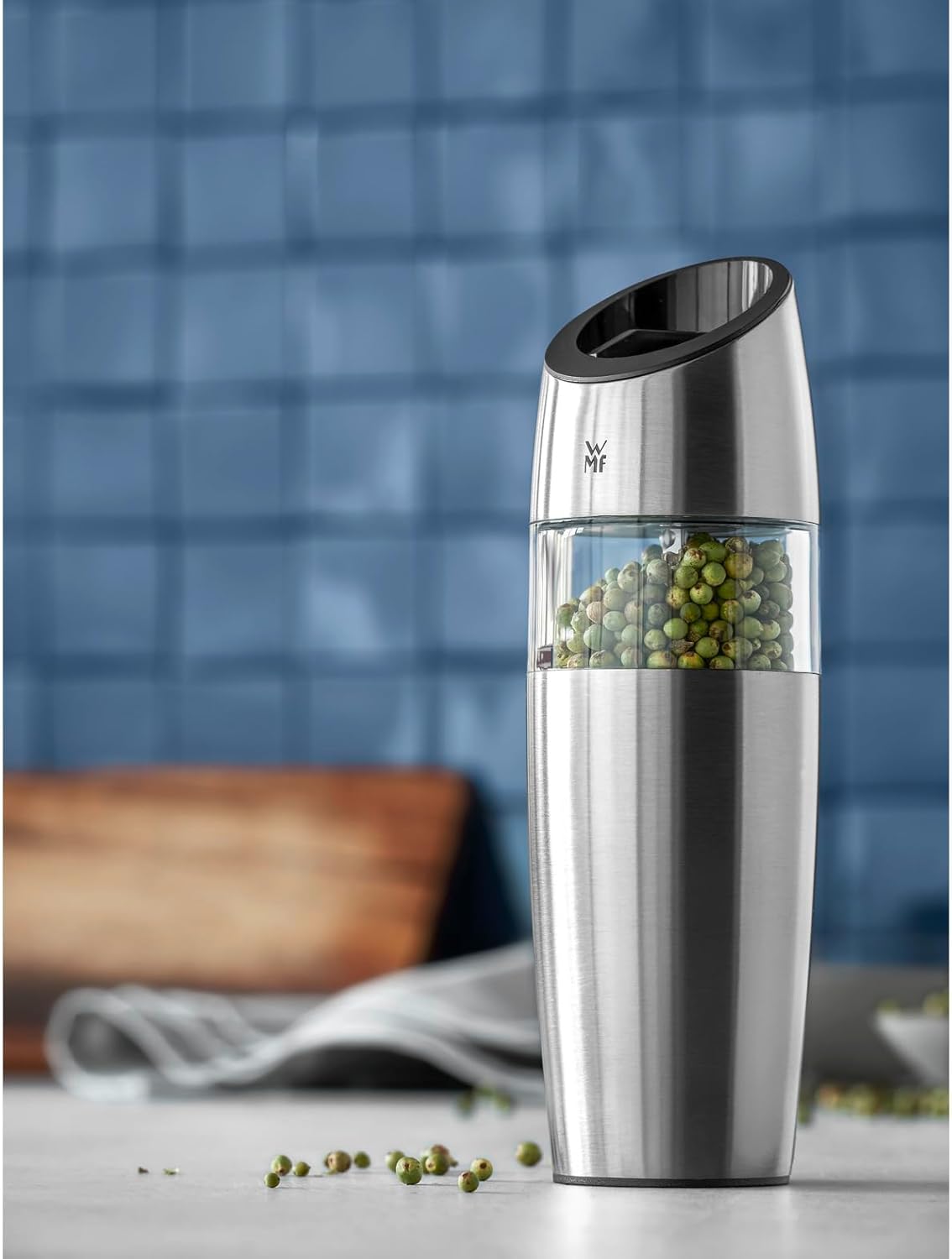 WMF Elektrische Kippmühle 20 cm, Salz und Pfeffermühle, unbefüllt Cromargan, Edelstahl matt Glas, Keramikmahlwerk Single | قیمت یورویی 54.99€