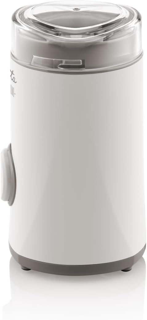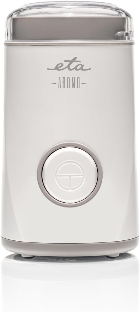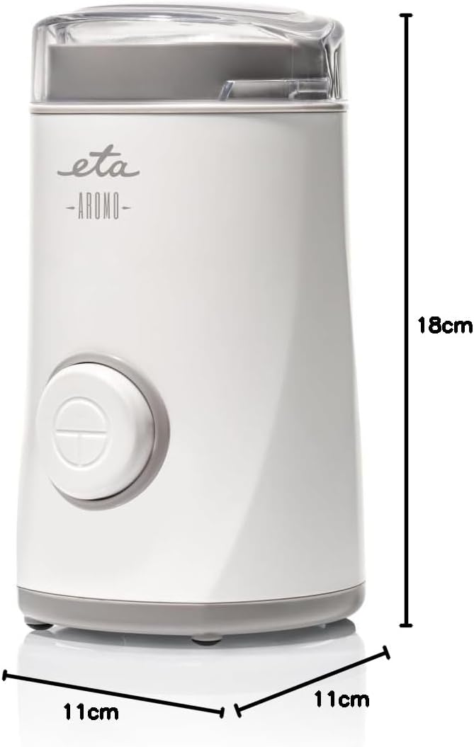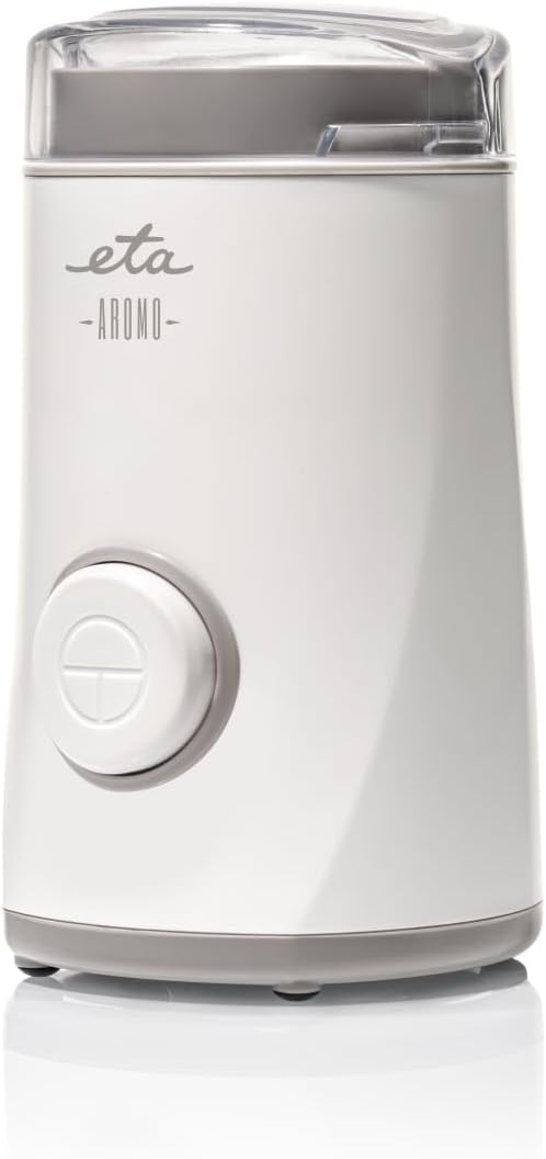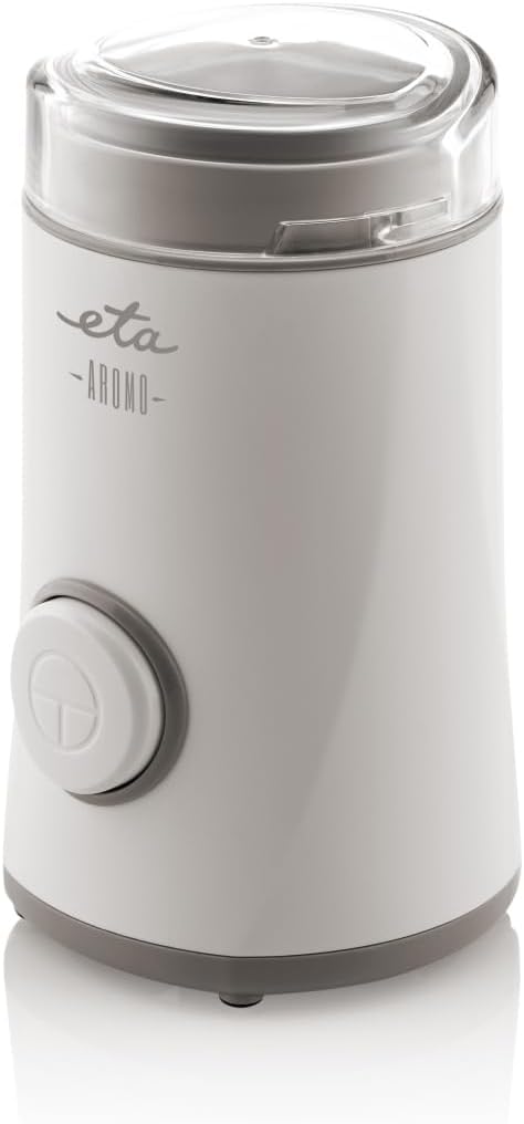 Die Kaffeemühle Aromo mit einer Leistung von 150 W wird jeden Kaffeeliebhaber erfreuen. Dank einer Drehzahl von bis zu 29.000 U/min und einer Stahl-Schlagklinge mahlt sie den Kaffee gleichmäßig und bewahrt so sein Aroma. Die Kaffeemühle ETA ist leistungsstark und robust. Ihr elegantes Design in Weiß fügt sich zudem perfekt in jede Küche als interessantes Accessoire ein. Die speziellen Klingen aus rostfreiem Stahl haben eine lange Lebensdauer. Auch das Mahlwerk besteht aus Edelstahl und bietet Platz für bis zu 50 g Kaffeebohnen. Das Mahlen des Kaffees wird durch Drücken des praktischen Kippschalters gestartet. Je nach Mahlzeit können Sie die Feinheit des Kaffees anpassen – je länger Sie den Mahlknopf gedrückt halten, desto feiner wird der gemahlene Kaffee. Die Bedienung der Kaffeemühle ETA Aromo ist sicher. Die rutschfesten Füße sorgen dafür, dass die Mühle an ihrem Platz bleibt, und die Sicherheitsabschaltung verhindert, dass die Mühle in Betrieb genommen wird, wenn ihre einzelnen Komponenten nicht richtig zusammengefügt sind. Sollte es Ihnen also zufällig nicht gelingen, die Mühle korrekt zusammenzubauen, wird sie nicht eingeschaltet. Mit dem durchsichtigen Deckel können Sie den Mahlprozess des Kaffees beobachten. Mit dem praktischen Kippschalter können Sie den Kaffee nach Wunsch auf die gewünschte Feinheit mahlen. Die Sicherheit beim Mahlen wird durch eine Schutzvorrichtung gegen unbeabsichtigtes Einschalten gewährleistet. | قیمت یورویی : 19.99€