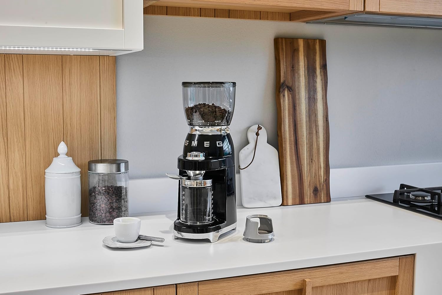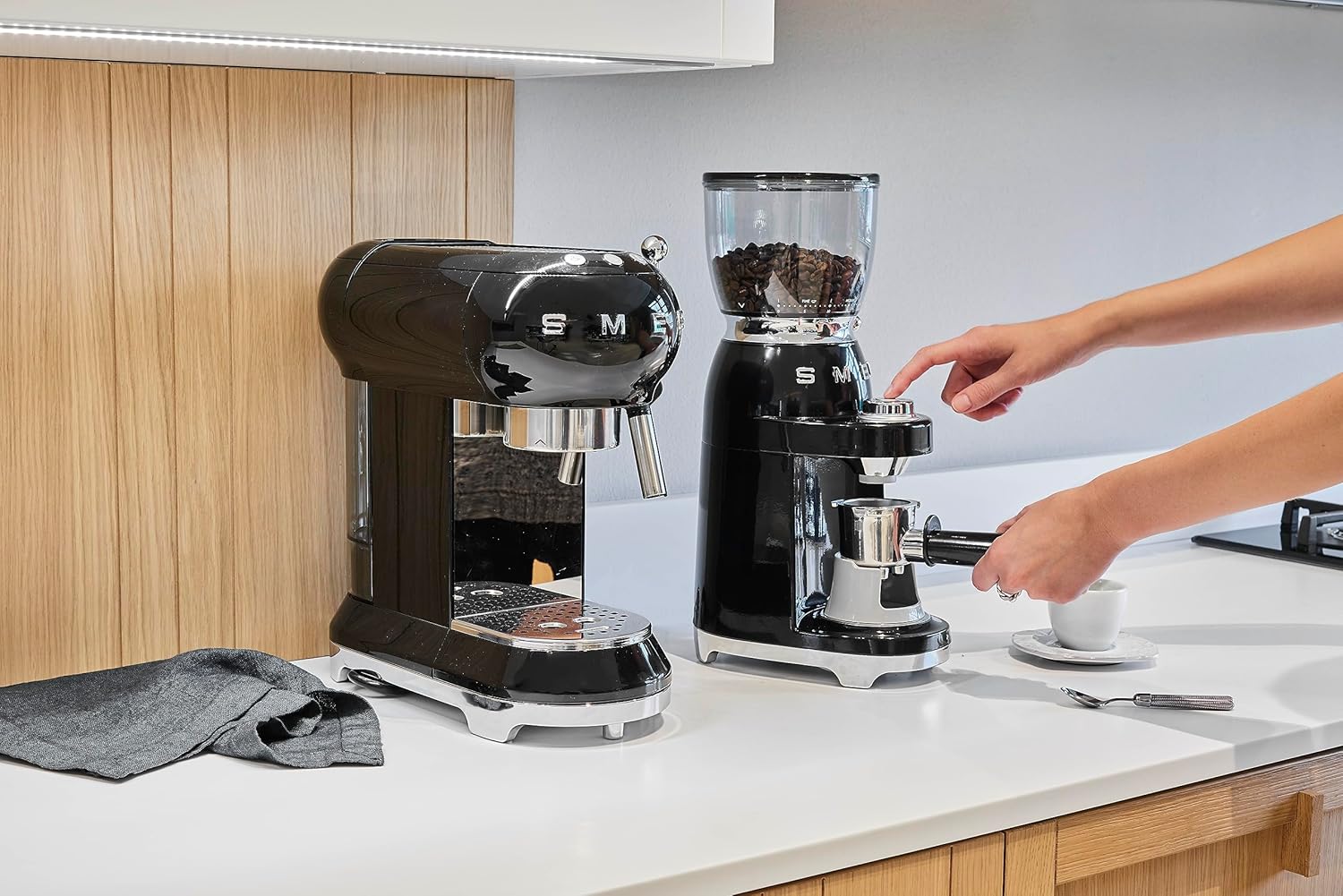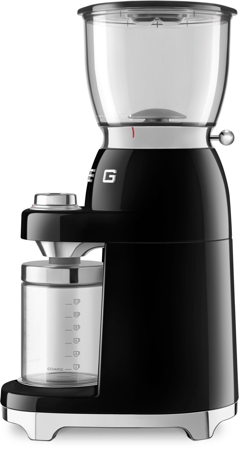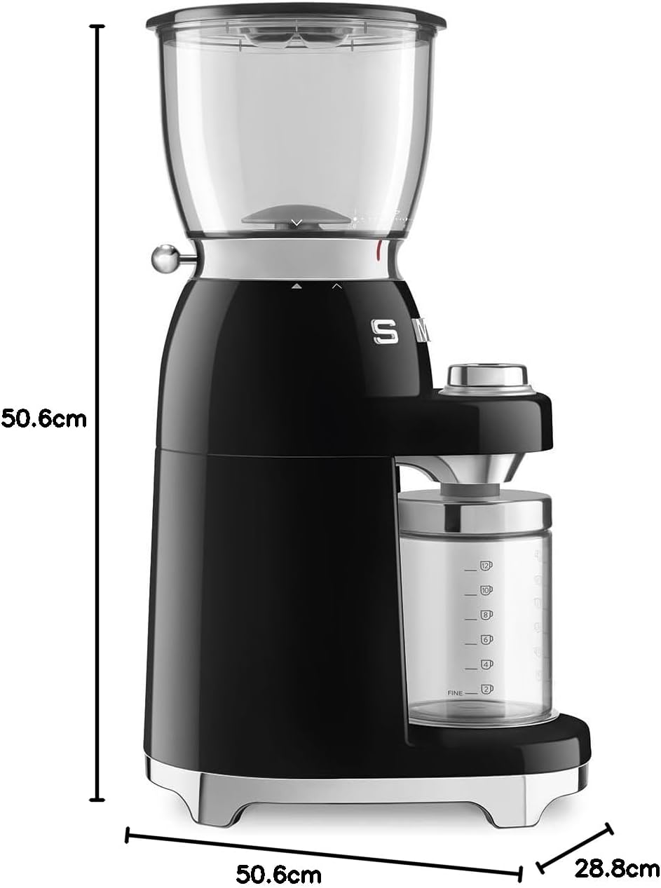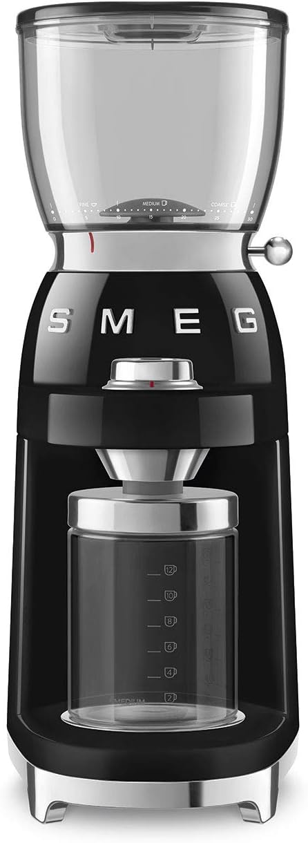 آسیاب قهوه اسمگ مدل CGF01 با طراحی رترو دهه ۵۰ میلادی و رنگ مشکی براق ، ظاهری زیبا و کلاسیک را با عملکرد حرفهای ترکیب میکند. این آسیاب با تیغه استیل مخروطی، دانههای قهوه را با دقت و یکنواختی آسیاب میکند.