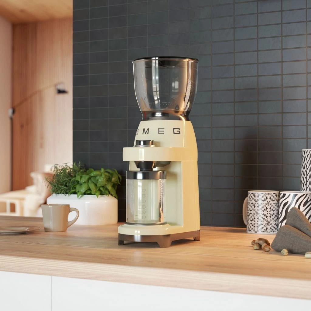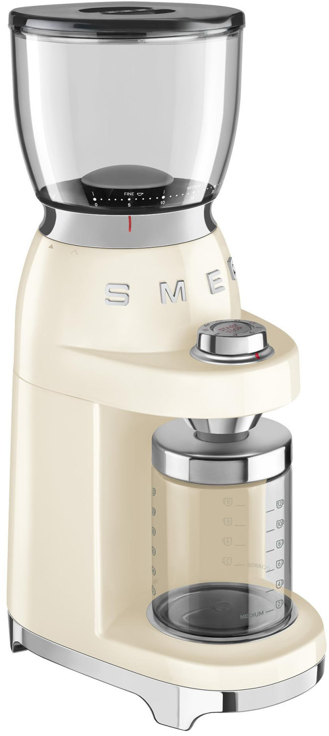 آسیاب قهوه اسمگ مدل CGF01 با طراحی رترو دهه ۵۰ میلادی و رنگ کرم، ظاهری زیبا و کلاسیک را با عملکرد حرفهای ترکیب میکند. این آسیاب با تیغه استیل مخروطی، دانههای قهوه را با دقت و یکنواختی آسیاب میکند.