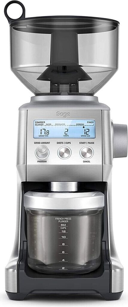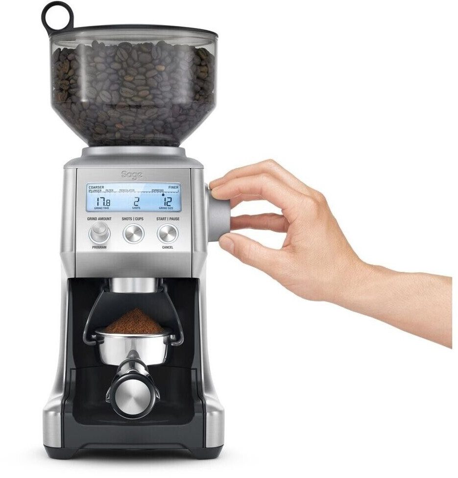 آسیاب قهوه Sage The Smart Grinder Pro با تیغههای استیل ضد زنگ و تنظیمات دقیق سایز آسیاب، مناسب برای انواع روشهای دمآوری قهوه است. قابلیت برنامهریزی و دقت بالا در خرد کردن دانهها از مزایای این محصول است.