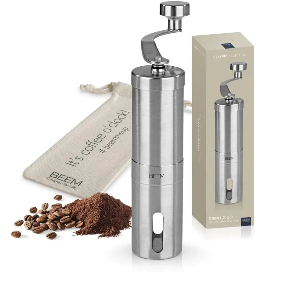 اگر به دنبال یک آسیاب قهوه دستی با کیفیت، قابل حمل و با قابلیت تنظیم دقیق درجه آسیاب هستید، Beem GRIND-2-GO انتخابی ایدهآل است. این آسیاب با تیغههای مخروطی سرامیکی، آسیاب یکنواخت و بدون ایجاد حرارت اضافی را تضمین میکند، که برای حفظ عطر و طعم قهوه ضروری است.
