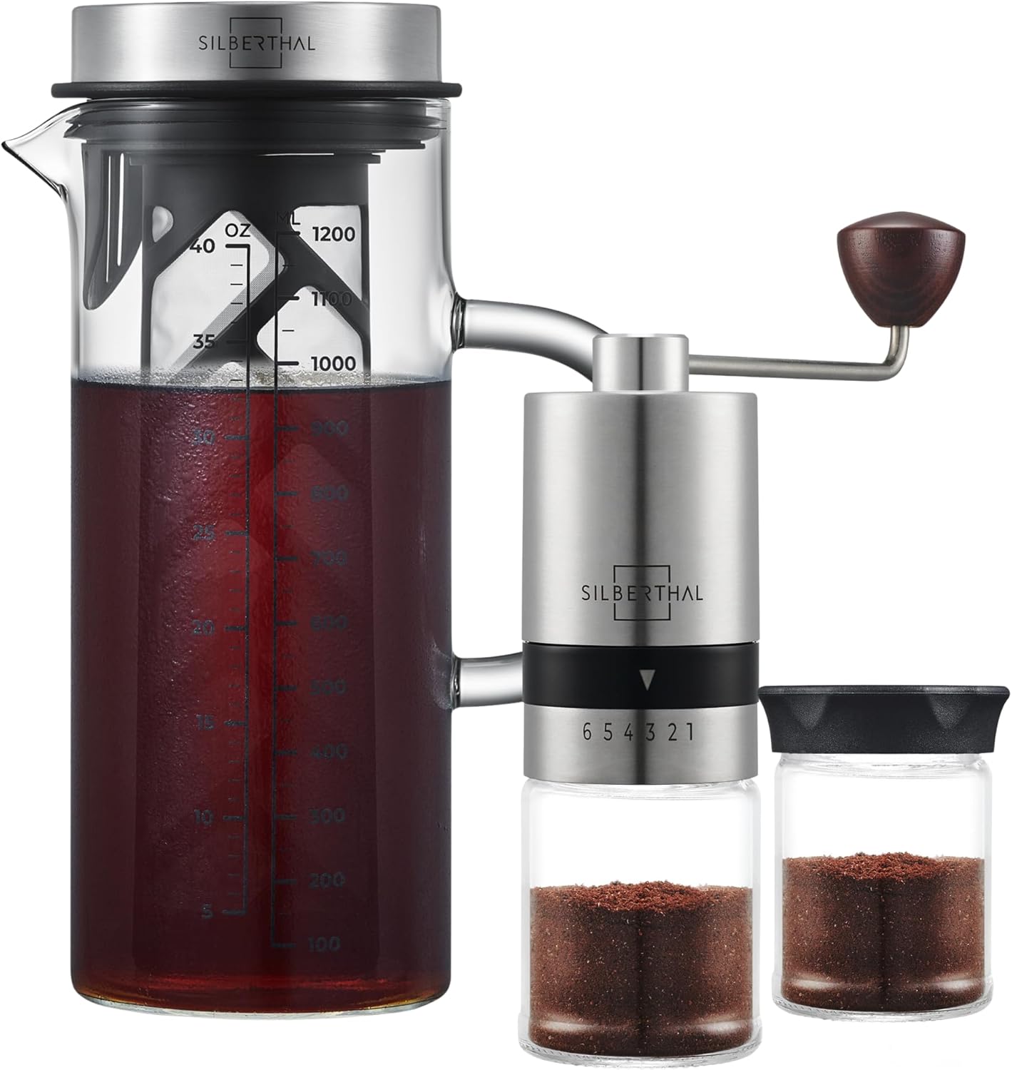 SILBERTHAL Kaffeemühle manuell und Cold Brew Coffee Maker - Genuss Set für Kaffeeliebhaber im Sommer Kaffeemühle mit Cold Brew Set | قیمت یورویی 98.65€