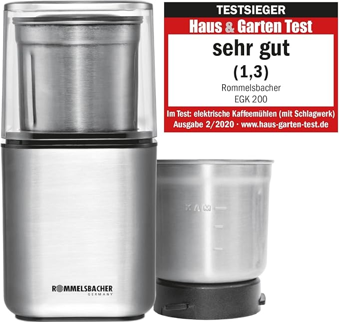 این آسیاب روملزباخر با موتور 200 وات و تیغه استیل عالی، قهوه، فلفل، دانهها، خشکبار و ادویهجات را با یک فشار ساده بر سرپوش به سرعت آسیاب میکند. دو محفظهی استیل با ظرفیت 70 گرم (هر کدام) امکان آسیاب جداگانه برای قهوه و ادویه یا خشکبار را بدون انتقال بو یا مزه فراهم میکند. بدنه کاملاً استیل ضد زنگ، قابل شستوشو و مستحکم است، و قطعات جداشونده قابل قرار گرفتن در ماشین ظرفشویی هستند. طراحی جمعوجور و صدای کم موتور، EGK 200 را برای استفاده روزمره یا صبح زود بدون مزاحمت ایدهآل میسازد.
