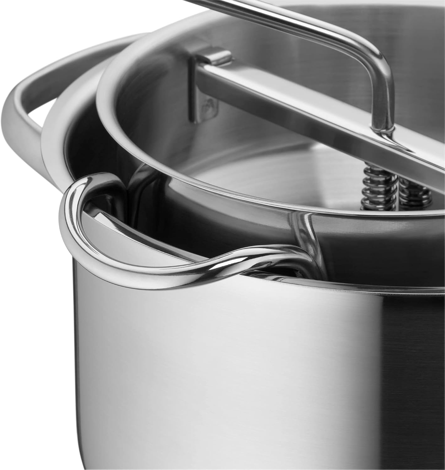 Inhalt: 1x Passiermühle (Ø 19 cm, Höhe 11,5 cm), 3x Lochscheibe (Ø 14 cm) zum Passieren und Reiben von Obst und Gemüse (2mm, 3 mm, 5 mm) - passend für Töpfe ab Ø 19 cm - Artikelnummer: 0605636040 Material: Cromargan Edelstahl Rostfrei 18/10 poliert - spülmaschinengeeignet, pflegeleicht, lange haltbar, geschmacksneutral und säurefest. Komplett zerlegbar für die Reinigung in der Spülmaschine 3 Lochscheiben (Ø14cm) für einfaches Passieren: extrafein (2mm) für Babynahrung oder feine Saucen, fein (3mm) für Suppen, Gelee, Apfelmus oder Kartoffelpüree, grob (5mm) für Gemüse oder leichte Suppen Durch das hochwertige Edelstahl des Passiersiebs können kalte und heiße Lebensmittel in der Passiermühle verarbeitet werden. Die Lochscheiben sind einfach zu wechseln Die praktische Trichterform lässt nicht nur die Lebensmittel problemlos nach unten rutschen, der Sieb sitzt während dem Passieren fest auf dem Topfrand auf | قیمت یورویی : 66.49€