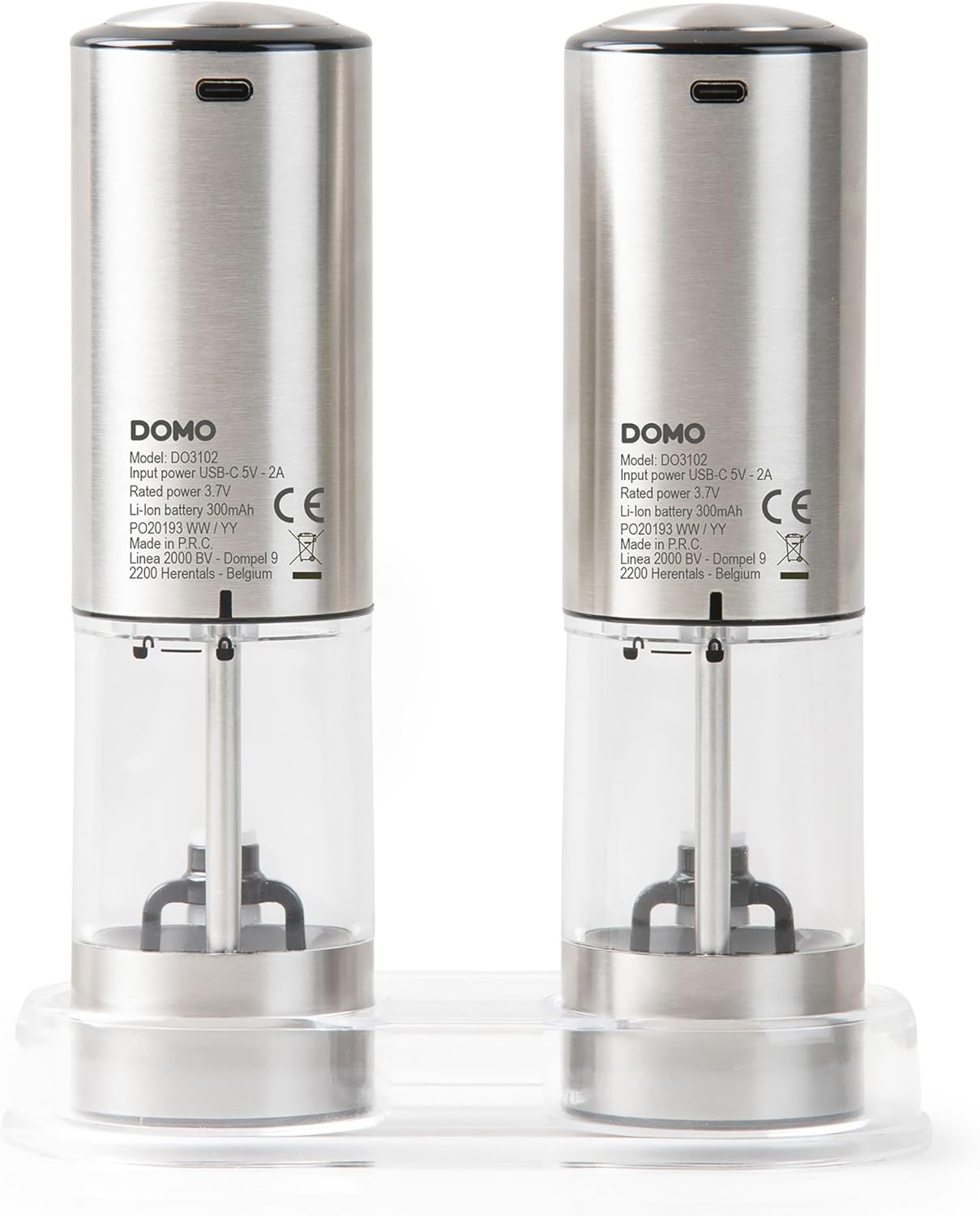آسیاب نمک و فلفل برقی DOMO DO3102، 2 عددی - روشنایی LED - استیل ضد زنگ، قابل شارژ با USB-C