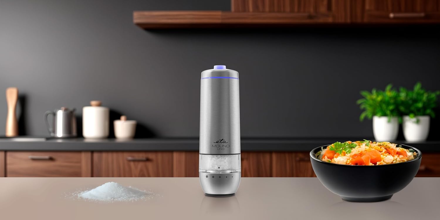 ETA Elektrische Salz- und Pfeffermühle mit Keramikmahlwerk Molino Uno I USB-C wiederaufladbar I einstellbarer Mahlgrad I modernes Design I für Salz, Pfeffer & Gewürze | قیمت یورویی 22.99€
