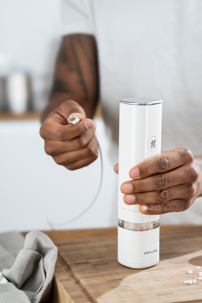آسیاب نمک و فلفل شارژی زولینگ مدل Enfinigy، با طراحی زیبا و سیستم آسیاب سرامیکی با کیفیت بالا، تجربهای متفاوت از آسیاب کردن ادویهها را ارائه میدهد.
