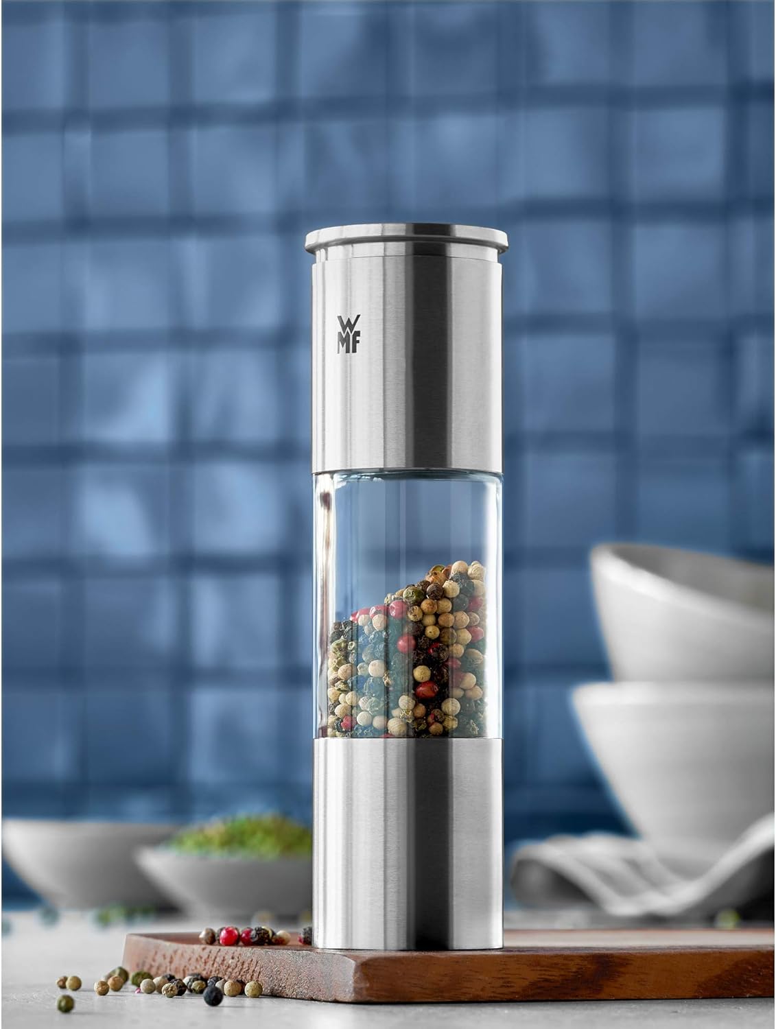 آسیاب نمک و فلفل WMF 18 سانتی متر، بدون مواد پرکننده، استیل ضد زنگ Cromargan، ظرف شیشه ای، مکانیزم آسیاب سرامیکی، آسیاب نمک، فلفل، فلفل چیلی (تک عددی)