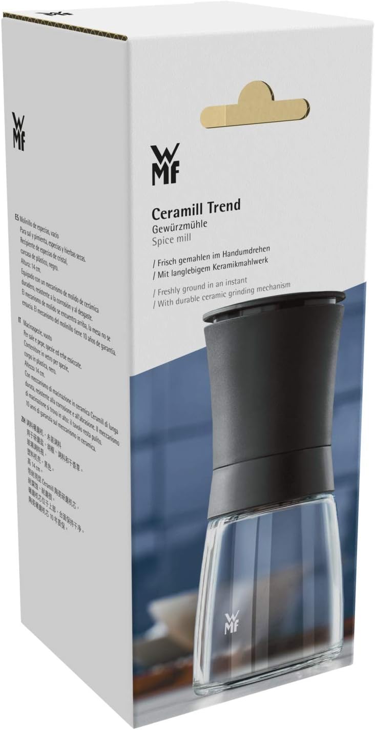 WMF Trend Salzmühle Pfeffermühle 14 cm, unbefüllt, Gewürzmühle, Keramikmahlwerk, Kunststoff, Glas, schwarz Schwarz 14 cm | قیمت یورویی 11.99€