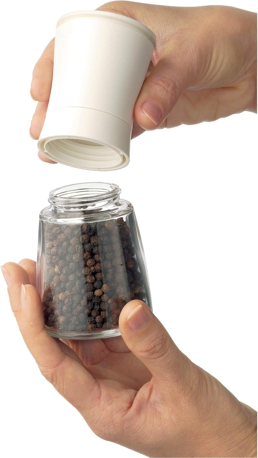 Inhalt: 1x Salz und Pfeffer Mühle unbefüllt (Höhe 14 cm, Ø 6/4,7 cm) - Artikelnummer: 0647906630 Material: Kunststoff, Keramik-Mahlwerk, Glasbehälter (spülmaschinengeeignet). Keinen Schmutz auf der Arbeitsfläche da die Mahl-Öffnung der Salz- und Pfeffermühle oben liegt. Aromadicht verschließbar Das Einstellrad ermöglicht die stufenlose Einstellung der Mahlstärke von grob bis fein. Bei jeder Drehung kommt das Mahlgut in gleichmäßiger Körnung heraus. Große Öffnung für problemloses Nachfüllen Keramikmahlwerk ist härter als Stahl, korrosions- und verschleißfrei. Es mahlt Pfeffer und Salzkörner, getrocknete Kräuter (Chillischoten) und Gewürze. Keramik ist lebensmittelneutral und abriebfrei Herstellergarantie: 10 Jahre auf das Keramikmahlwerk. Die Garantiebedingungen finden Sie unter Weitere technische Informationen | قیمت یورویی : 11.99€