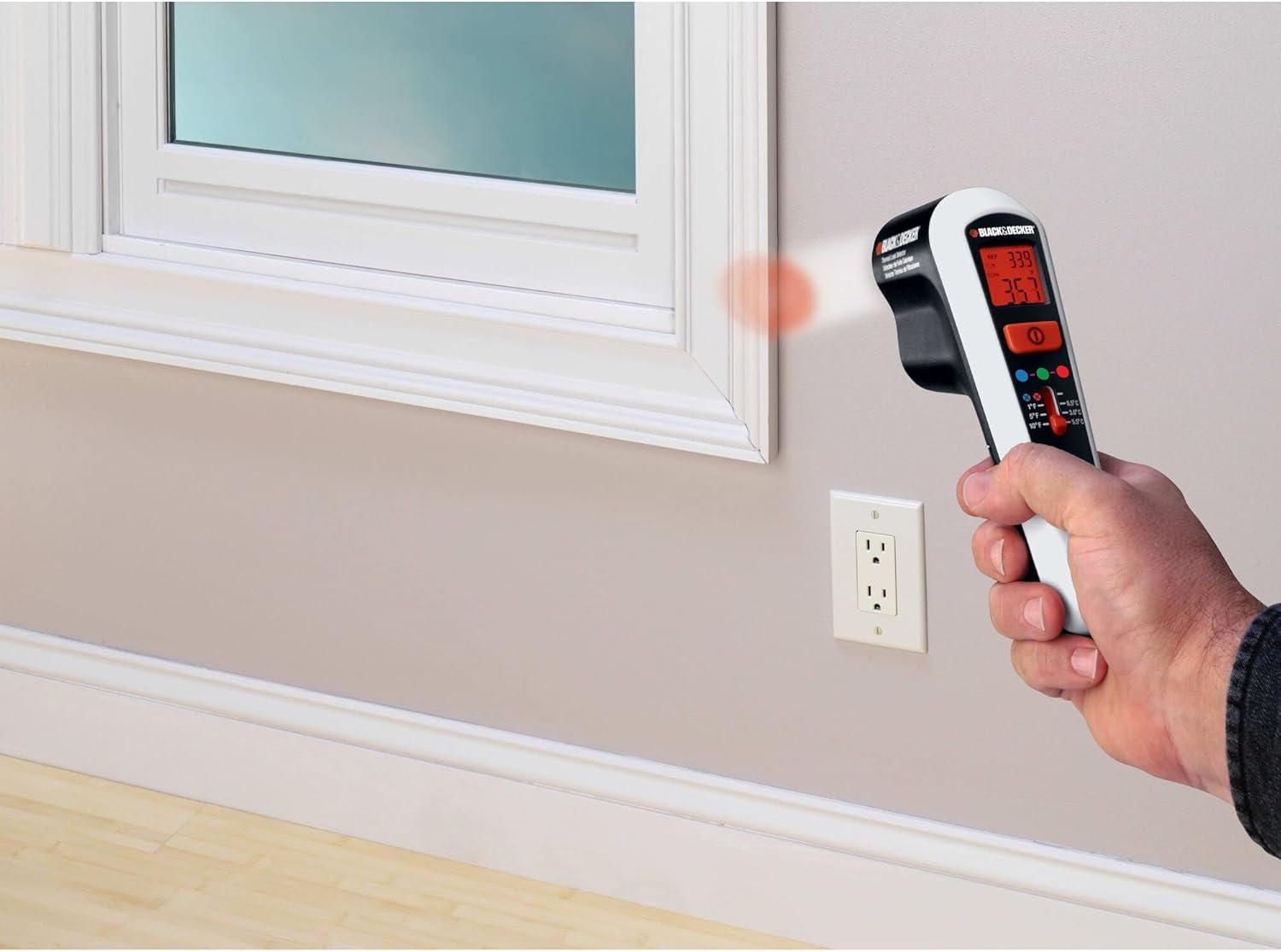 آشکارساز ذخیره انرژی لیتیوم یونی Black+Decker 9 ولت / دماسنج مادون قرمز و آشکارساز حرارتی با نمایشگر LCD و چراغ سیگنال LED برای از بین بردن نقاط ضعف عایق / TDL100