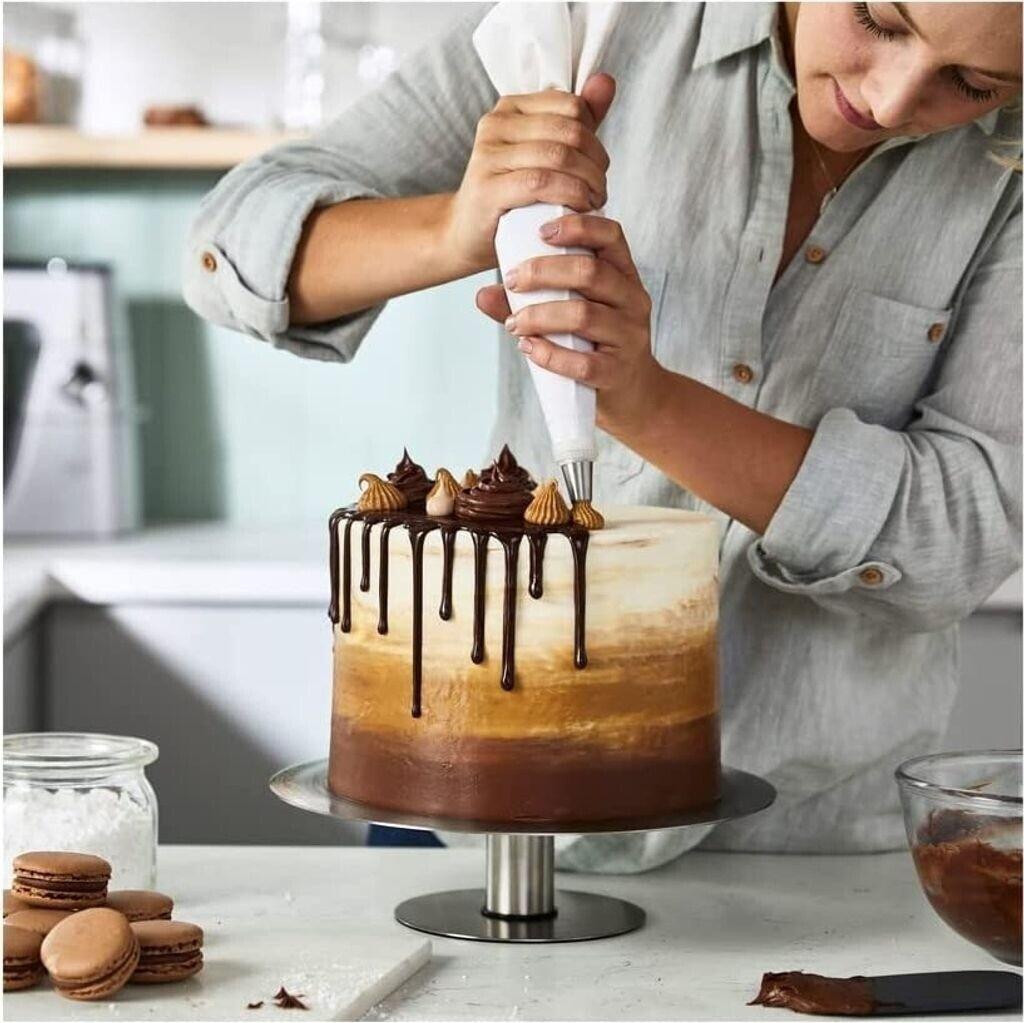 این مجموعه برای علاقهمندان به شیرینیپزی و حرفهایها طراحی شده است و استفاده از آن به آسانی امکانپذیر است. ابزارها کاملاً ضد زنگ و مقاوم در برابر رطوبت هستند و نازلهای قیف قابل استفاده مجدد بوده و به راحتی قابل شستشو هستند. صفحه چرخان استیل مقاوم با کیفیت بالا، دوام و ثبات عالی دارد.