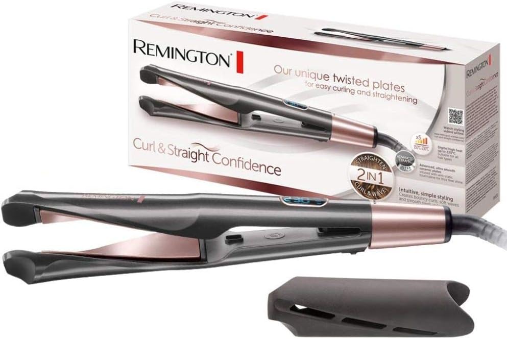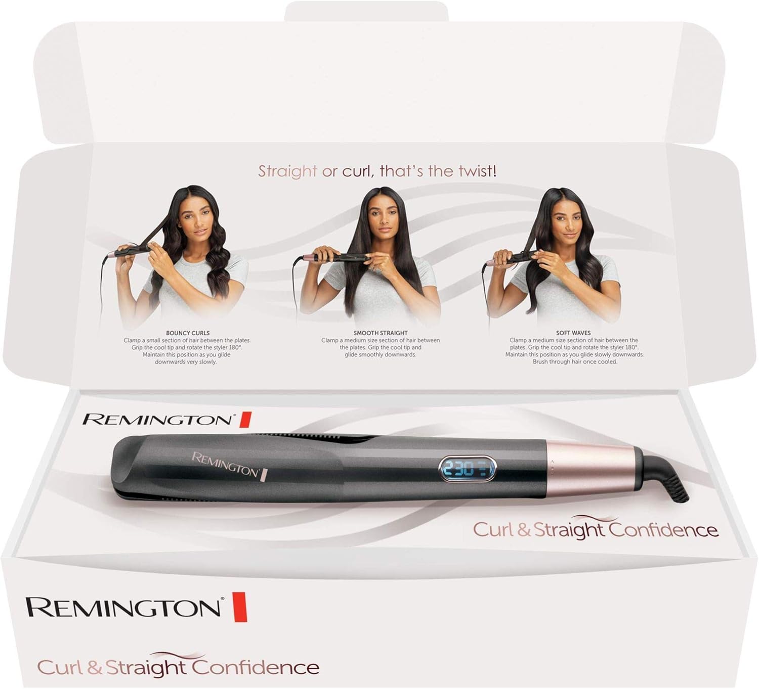 Remington Glätteisen und Lockenstab - Curl/Straight Confidence 2in1 Multistyler [Upgrade] (geschwungene Stylingplatten zum Glätten, Locken, Wellen) 150-230°C, Haarglätter S6606B [Amazon Exklusiv] Haarglätter 2in1 | قیمت یورویی 37.89€