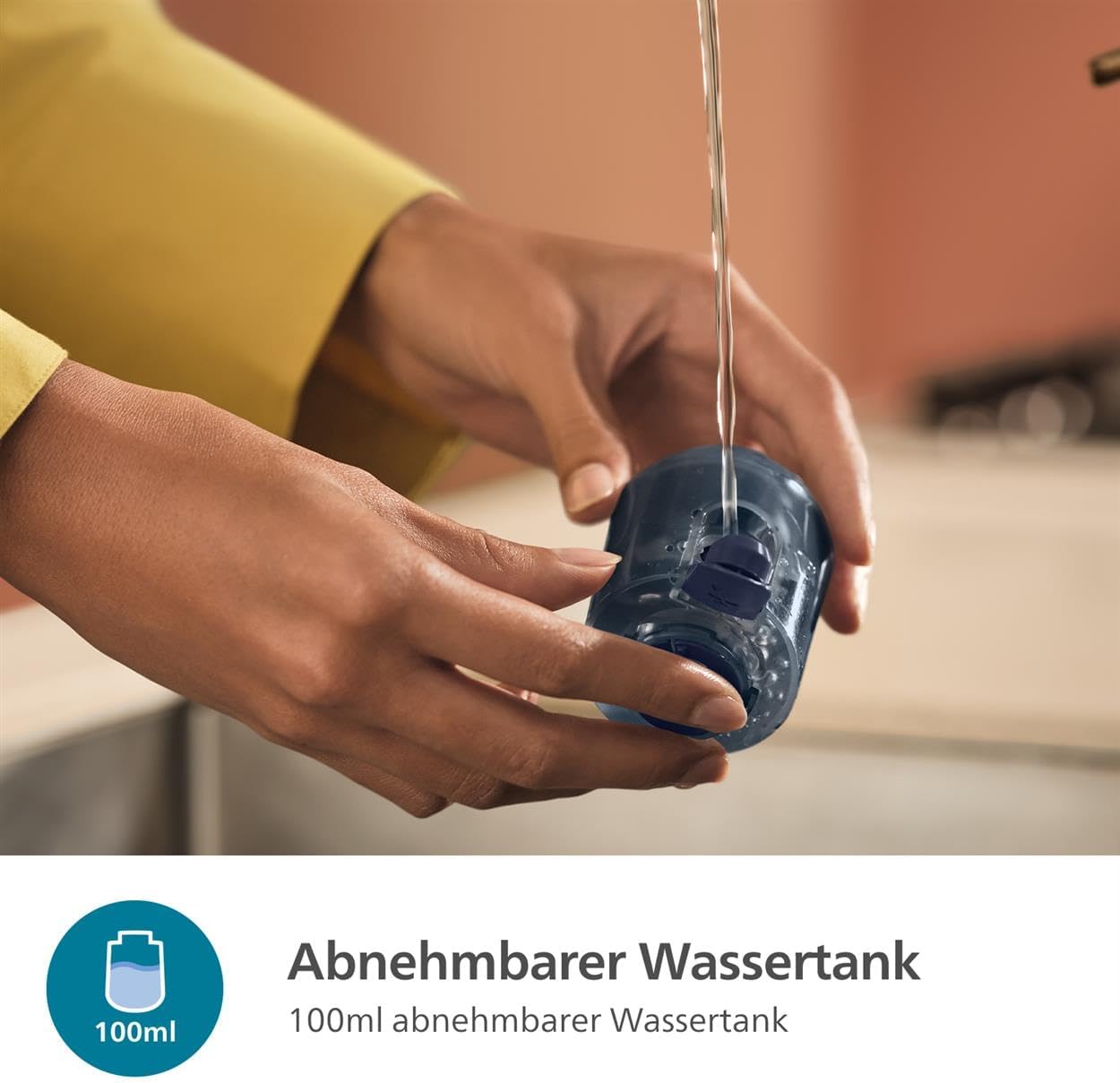 Einzigartiger verstellbarer Kopf: Mit dem vielseitig verstellbaren Kopf können Sie Falten aus jedem Winkel dämpfen - vertikal oder horizontal, ganz wie Sie wollen! OptimalTEMP-Technologie: Die OptimalTEMP-Technologie sorgt dafür, dass kein Stoff verbrannt wird, und ermöglicht ein sorgenfreies Dampfen. Tötet 99,9% der Bakterien ab: Die 7000-Serie entfeuchtet nicht nur, sondern erfrischt und desodoriert auch, indem sie bis zu 99,9 % der Bakterien abtötet (1). Spitze der Dampfplatte: Die spitze Nase der Dampfplatte ermöglicht präzises Glätten von Falten an schwer zugänglichen Stellen wie Knöpfen, Kragen und Falten. Bis zu 28 g/min Dauerdampf: Mit einer kontinuierlichen Dampfleistung von bis zu 28 g/min entspannen sich die Fasern des Gewebes schnell und ermöglichen ein schnelles Glätten der Kleidungsstücke, damit sie tadellos aussehen. 100 ml abnehmbarer Wassertank: Zum Bügeln eines kompletten Outfit ohne Nachfüllen. Der Wassertank kann leicht entfernt und bei Bedarf nachgefüllt werden. | قیمت یورویی : 75.11€