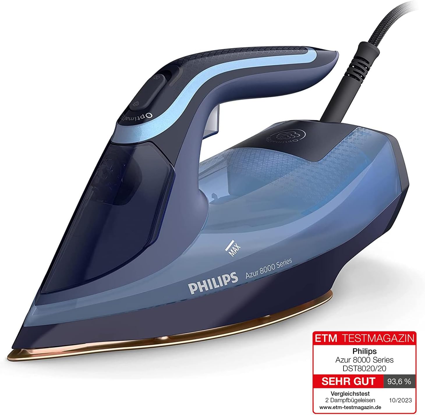 Philips Azur 8000 Serie Dampfbügeleisen - 55 g/min Dauerdampf, 240 g Dampfstoß, 3000 W, OptimalTEMP-Technologie, SteamGlide Elite, Hellblau (DST8020/20) | قیمت یورویی 77€