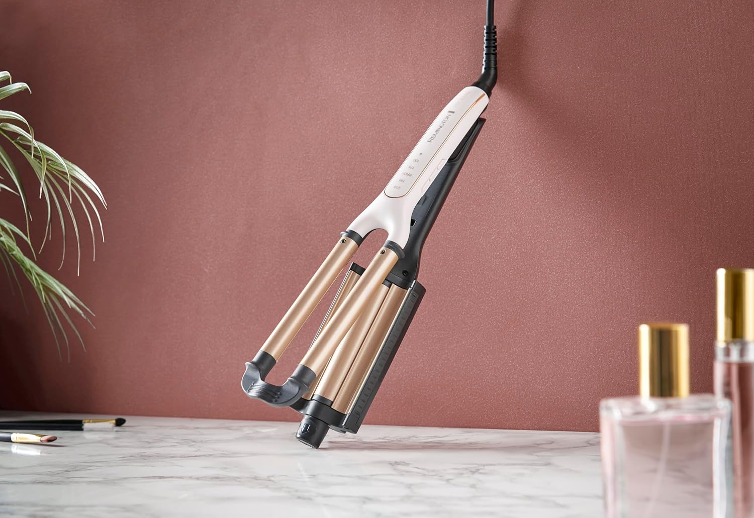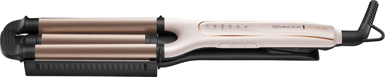 Remington Welleneisen [Testsieger] ProLuxe 4-in-1 Lockenstab: Beach, natürlich Wellen, Wasserwellen, (Dig. Display, Temperatureinstellung bis 210°C) Kreppeisen, Multistyler CI91AW, Weiße Rose | قیمت یورویی 39.89€