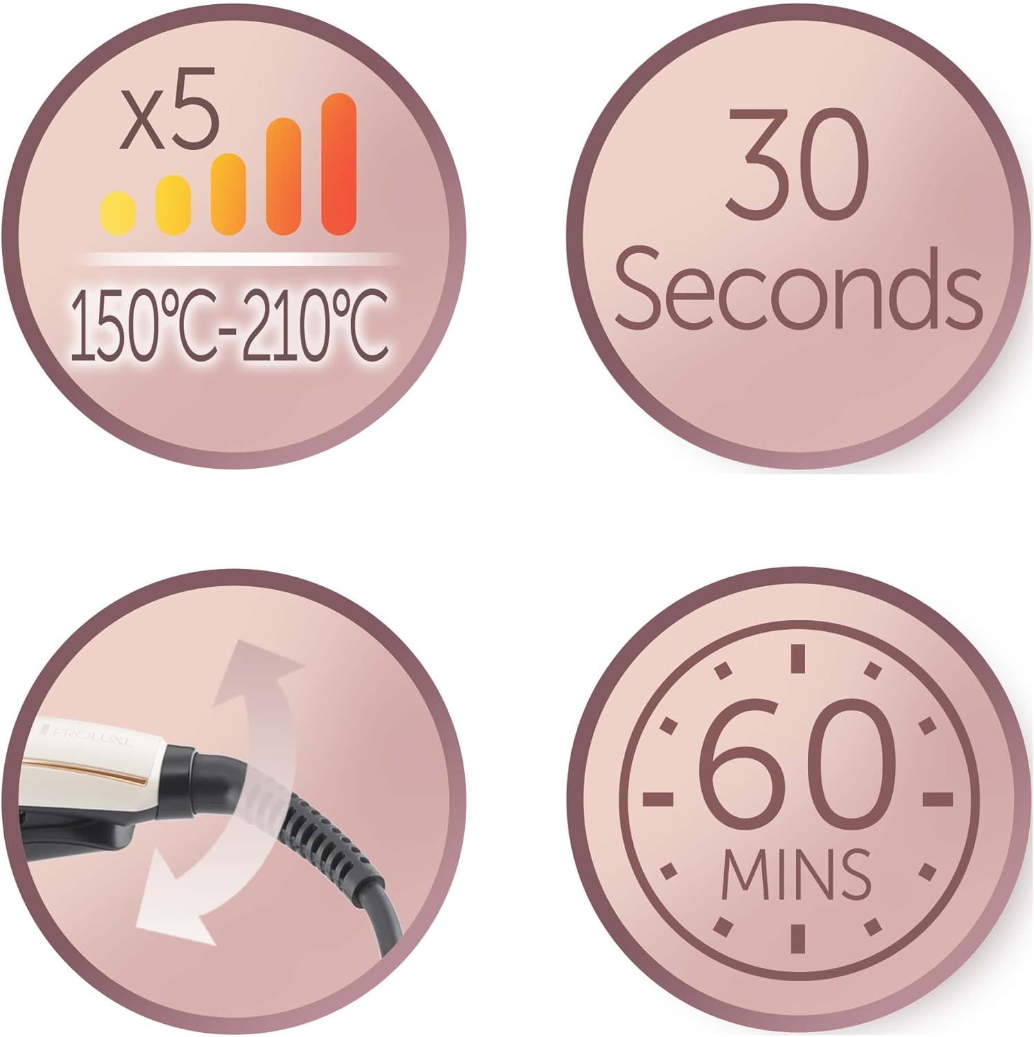 اتو موی رمینگتون [برنده تست] اتوی فرکننده ۴ کاره پرولوکس: ساحلی، موجهای طبیعی، موجهای آبی، (نمایشگر دیجیتال، تنظیم دما تا ۲۱۰ درجه سانتیگراد)، اتوی چیندار، حالتدهنده چندگانه CI91AW، رز سفید