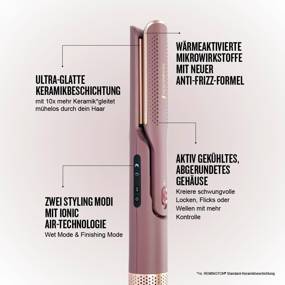 Remington AIRvive™ Airstyler [2-in-1 Glätteisen: Nass-& Trockenanwendung] Ionic Air-Technologie für geschmeidig glatte & wellige Styling-Ergebnisse (Anti-Frizz-Mikrowirkstoffe, LED-Display) AS8930 | قیمت یورویی 129.99€