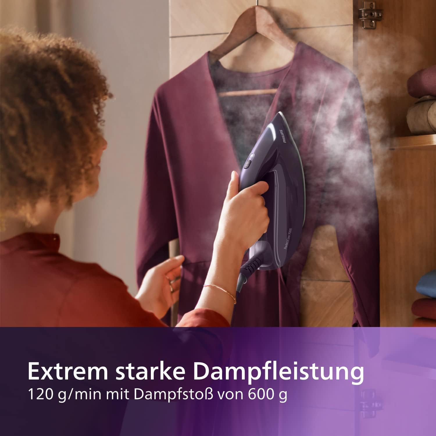 OptimalTEMP Technologie: Alle bügelbaren Stoffe mit einer idealen Temperatureinstellung schnell und sicher bügeln SteamGlide Elite-Bügelsohle: Für ultimative Gleitfähigkeit auf allen Stoffen und maximale Kratzfestigkeit Kraftvolle Dampfleistung: 2.100 Watt, 600g Dampfstoß, 120g Dauerdampf, 8.0 bar Dampfdruck Einfache Handhabung: Abnehmbarer 1,8L Wassertank, 800g leichtes Handstück, Transportverriegelung Easy De-calc Plus: Einfaches und effizientes System zum Entkalten Automatischer Dampfstoß für müheloses Bügeln: Dank Bewegungssensor-Technologie erkennt das Bügeleisen jede Bewegung und gibt automatisch zum richtigen Zeitpunkt kräftige Dampfstöße aus Vertikaldampf für hängende Kleidungsstücke: Mit der Vertikaldampffunktion können Sie Kleidungsstücke direkt am Kleiderbügel auffrischen und auch Falten aus Vorhängen entfernen – ganz ohne Bügelbrett Garantiert keine Brandflecken: Dank OptimalTEMP-Technologie hinterlässt Ihr Dampfbügeleisen keine Brandflecken auf bügelbaren Stoffen, selbst wenn Sie es auf Ihrer Kleidung stehen lassen Keine Einstellungen notwendig: Bügeln Sie alles von der Jeans bis zum Seidenhemd ohne Änderung der Temperatur – kein Vorsortieren der Wäsche, kein Ändern von Einstellungen und kein lästiges Warten Hartnäckige Falten problemlos entfernen: Die konstante Dampfleistung von 120 g/min übernimmt für Sie die harte Arbeit – mit einem zusätzlichen Dampfstoß von 600 g schmelzen die Falten nur so dahin | قیمت یورویی : 254.99€