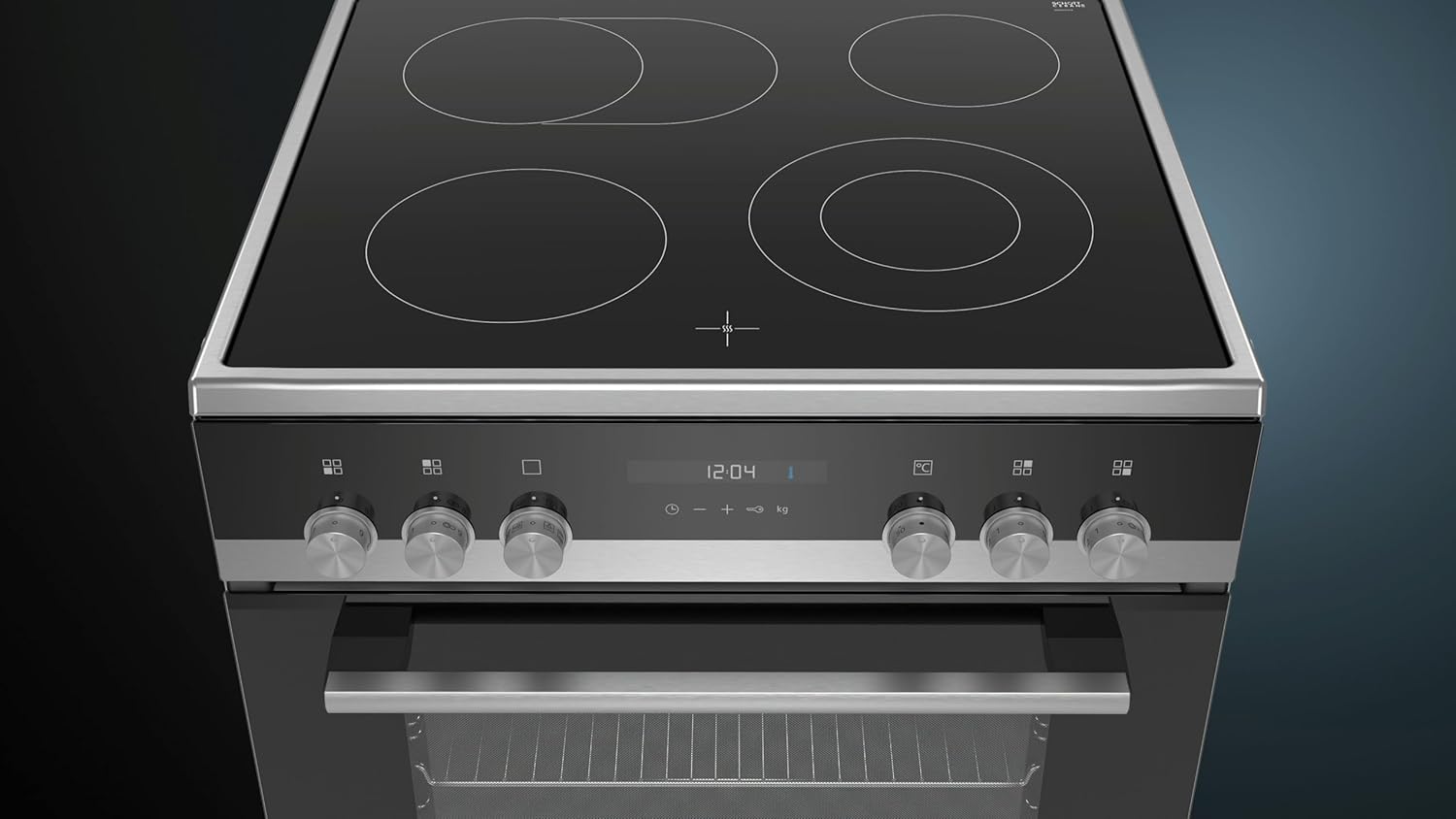 Siemens HK9S5A240, iQ500, Freistehender Elektroherd mit Glaskeramik-Kochfeld, 60 cm, Schnellaufheizung, ecoClean Selbstreinigungshilfe, 3D Heißluft, cookControl 10 Automatikprogramme, Edelstahl Schwarz | قیمت یورویی 669.94€