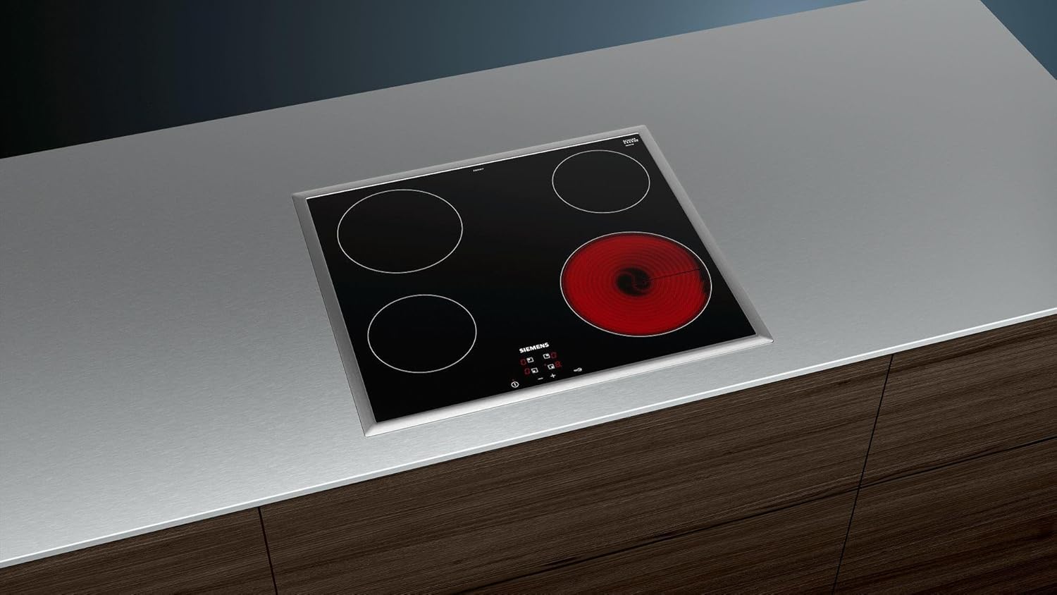 Siemens ET645HE17 Kochfeld Elektro, Edelstahl, 58,3 cm, Dank touchControl-Bedienung werden die Kochzonen durch leichtes Antippen mit dem Finger aktiviert und gesteuert, schwarz | قیمت یورویی 268.62€