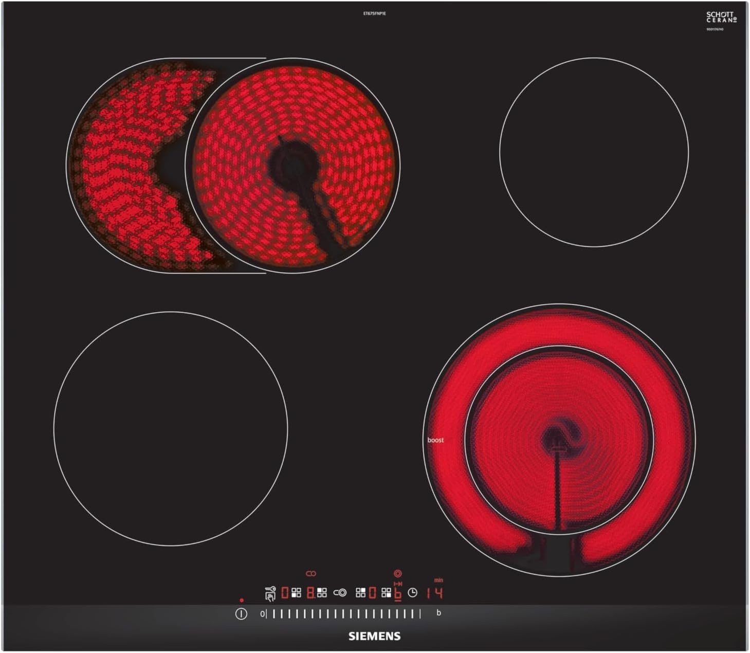Siemens ET675FNP1E iQ300 Elektrokochfeld / 4 Heizelemente / TouchSlider / Kindersicherung / 60.2 cm / Glaskeramik | قیمت یورویی 299€