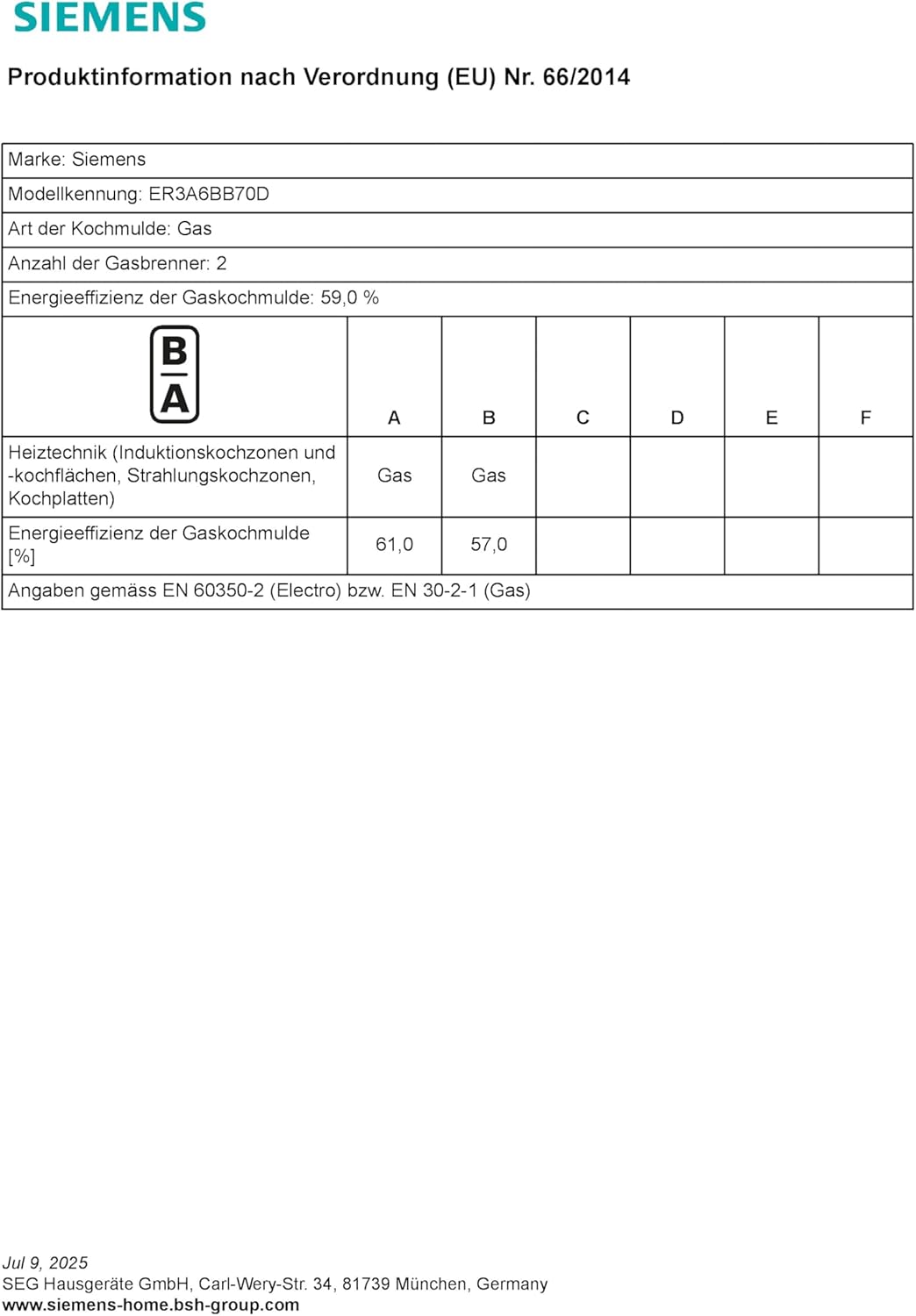 Siemens ER3A6BB70D iQ700 Domino-Gaskochefeld (autark), 30 cm breit, Gas-Kochstelle mit stepFlame Technology zur präzisen Steuerung der Flamme in neun Stufen | قیمت یورویی 398.9€