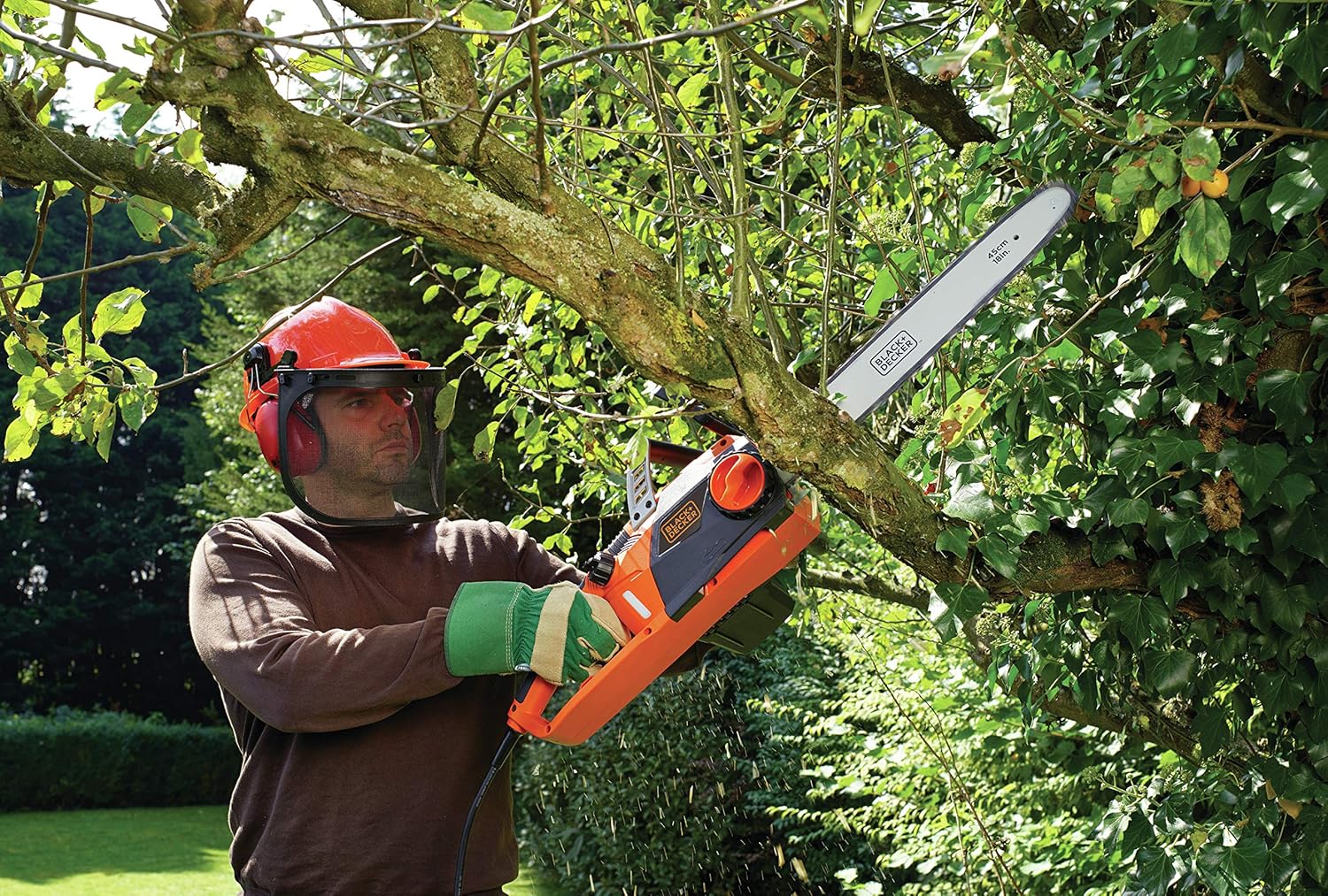 Black+Decker Elektro-Kettensäge (2200W, 45 cm Schwertlänge, 12,5 m/s Kettengeschwindigkeit, rückschlagarm Kettenbremse) CS2245 | قیمت یورویی 149€