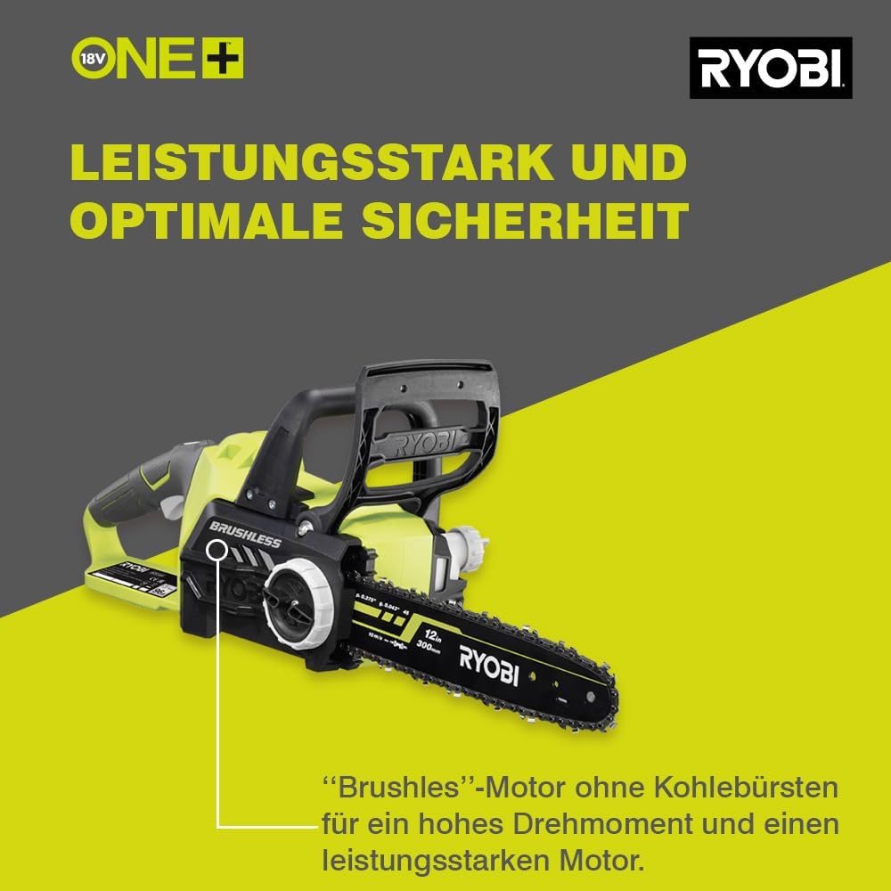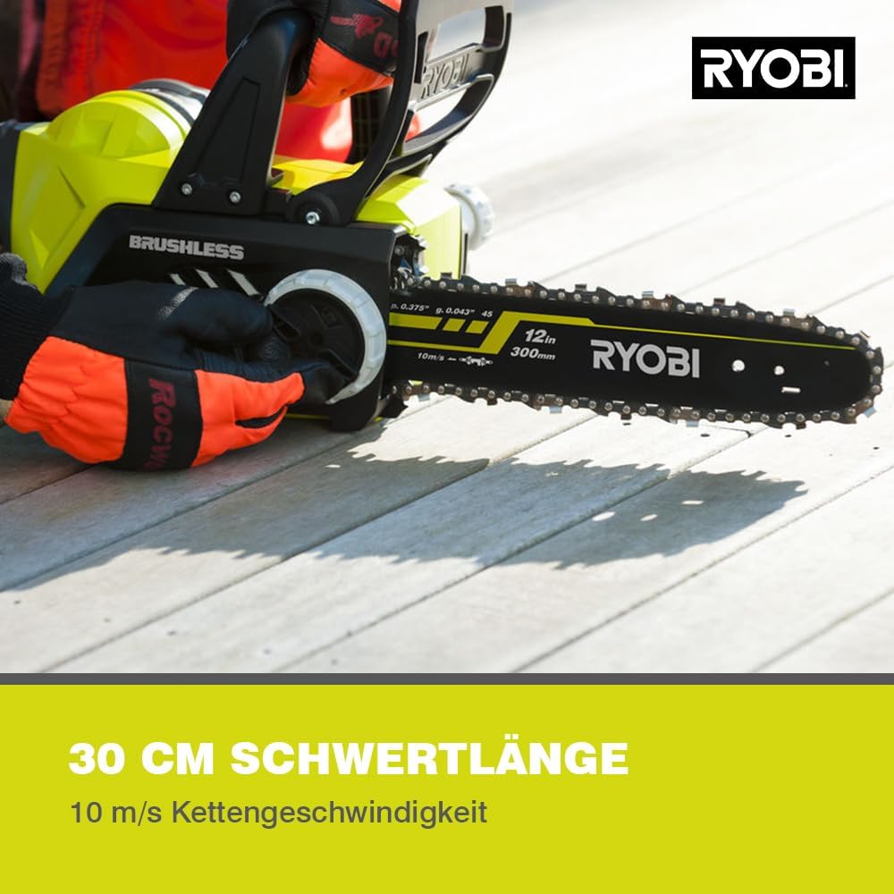 RYOBI 18 V ONE+ Brushless Akku-Kettensäge OCS1830, Schwertlänge 30 cm, bürstenloser Motor, werkzeugloses Kettenspannen, ohne Akku und Ladegerät | قیمت یورویی 169.99€