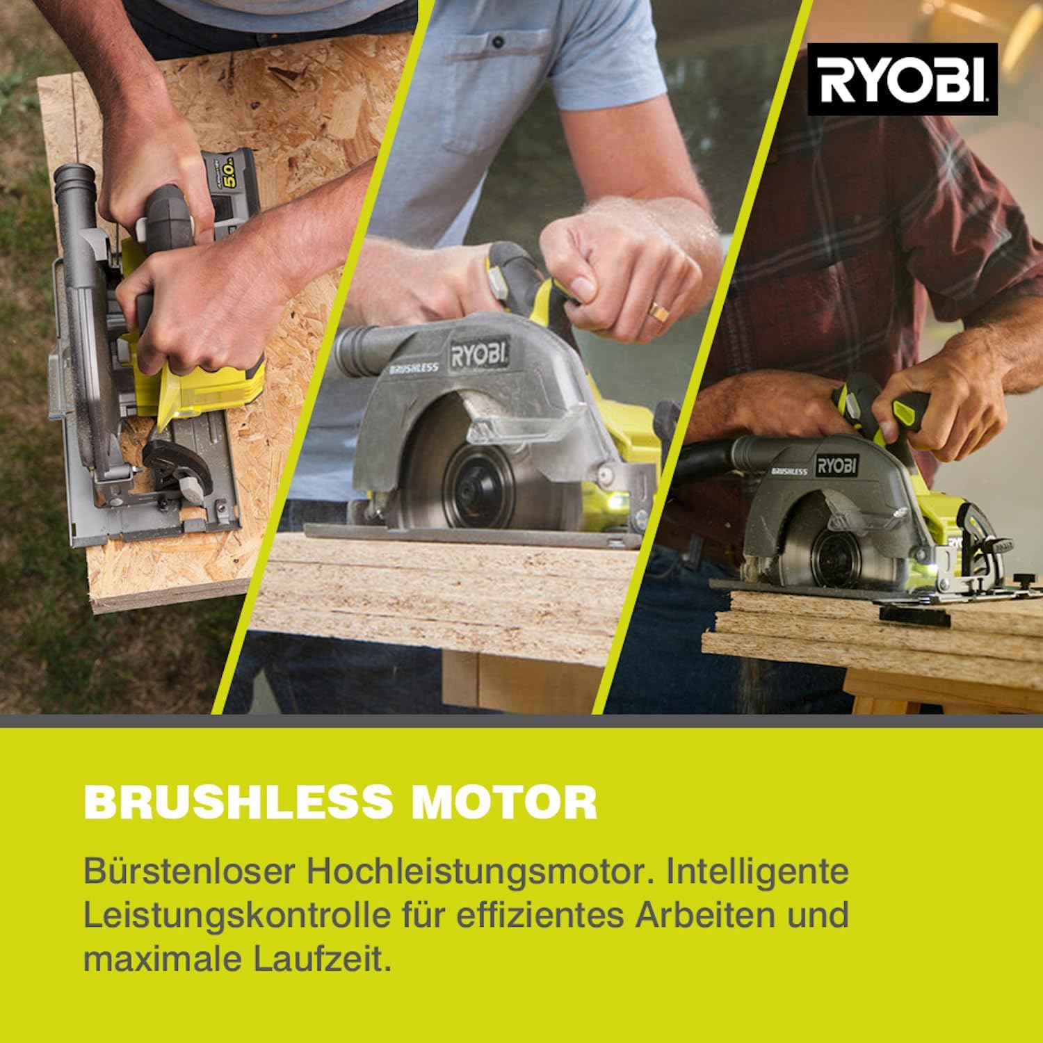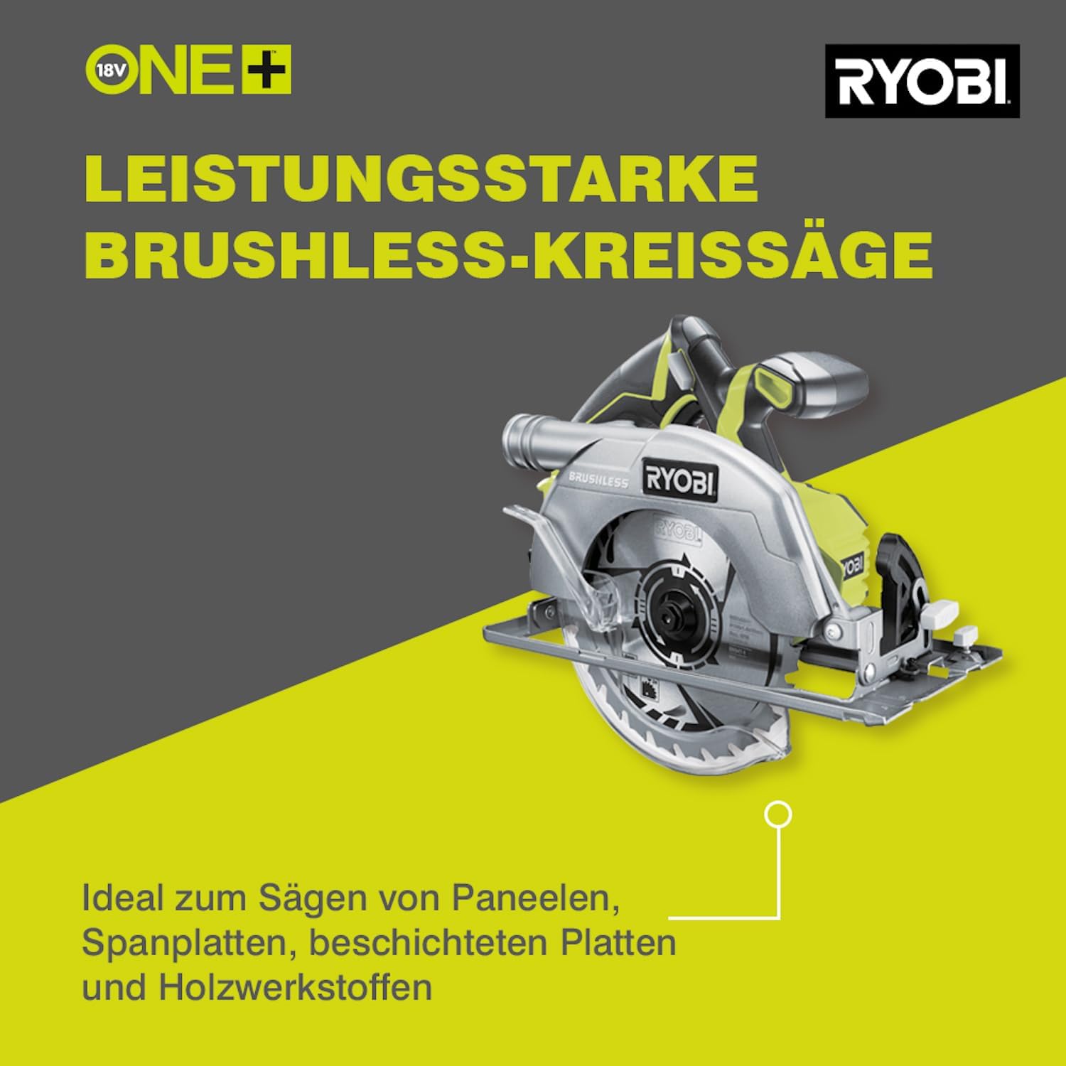 RYOBI 18 V ONE+ Brushless Akku-Handkreissäge R18CS7-0 (Sägeblatt-Ø 184mm, Schnitttiefe 90°/45° 60°/42mm, werkzeuglose Tiefeneinstellung, inkl.Sägeblatt, Parallelanschlag, ohne Akku & Ladegerät) | قیمت یورویی 183.2€