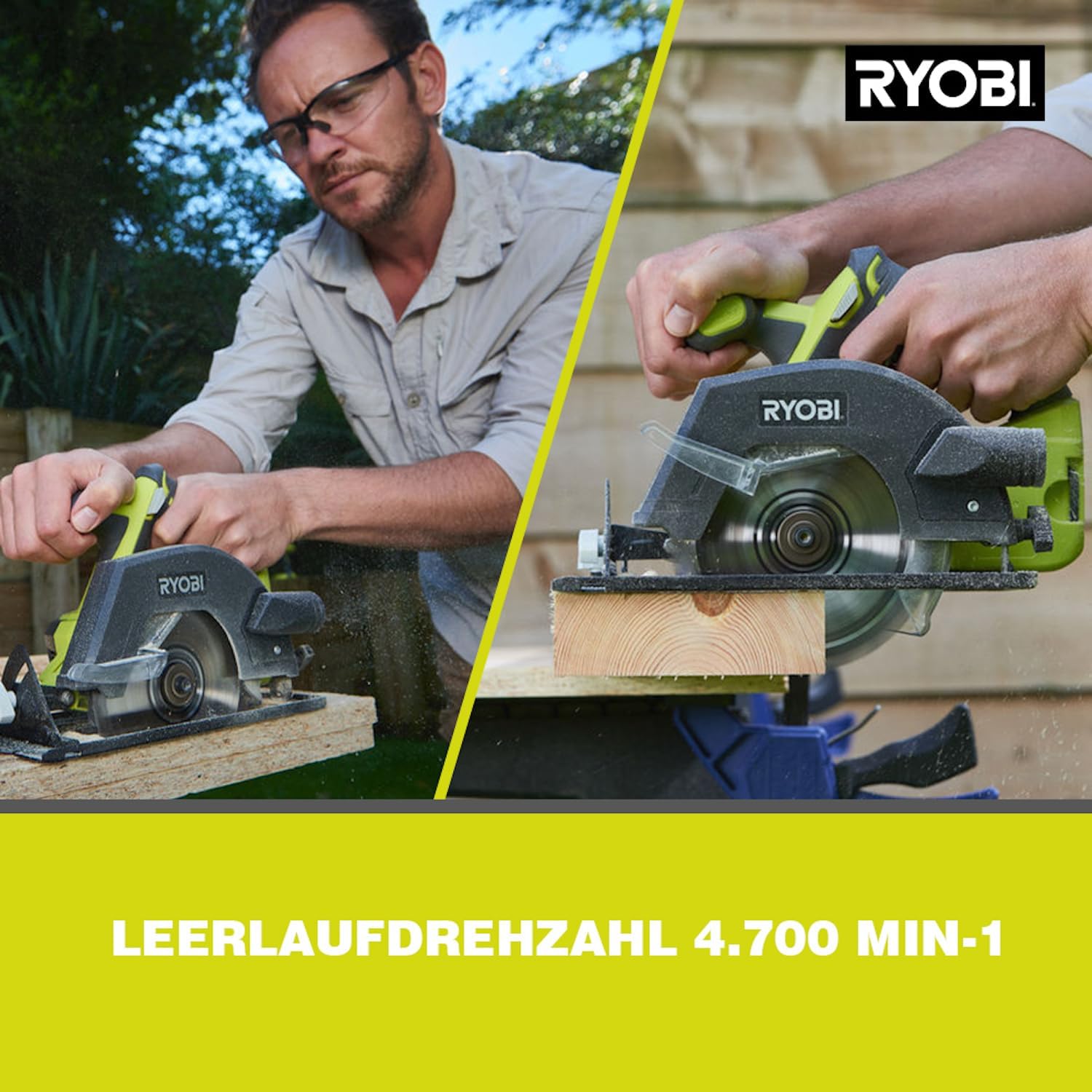 RYOBI 18 V ONE+ Akku-Handkreissäge R18CSP-0 (Sägeblatt-Ø 150 mm, Schnitttiefe 90°/45° 45/32 mm, werkzeuglose Tiefeneinstellung, inkl. Parallelanschlag, o, Akku & Ladegerät im Karton) | قیمت یورویی 90.38€