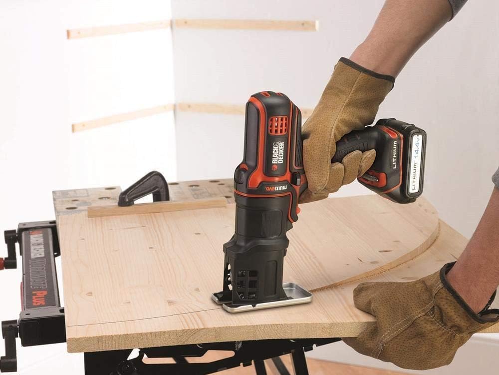 Black+Decker Stichsägen MTJS1-XJ لینک آمازون : https://www.amazon.de/dp/B009X6LHHW?th=1&psc=1 برش دقیق: با سر اره منبت کاری اره مویی Multievo می توانید چوب، آلومینیوم و فولاد را به طور دقیق برش دهید. اطلاعات فنی: سرعت در حالت آماده به کار: 0 - 2700H/min عمق برش: چوب / آلومینیوم / فولاد - 45 / 10 / 5 میلی متر محدوده تحویل: 1 عدد سر اره منبت کاری اره مویی، 5 عدد تیغه اره چوب