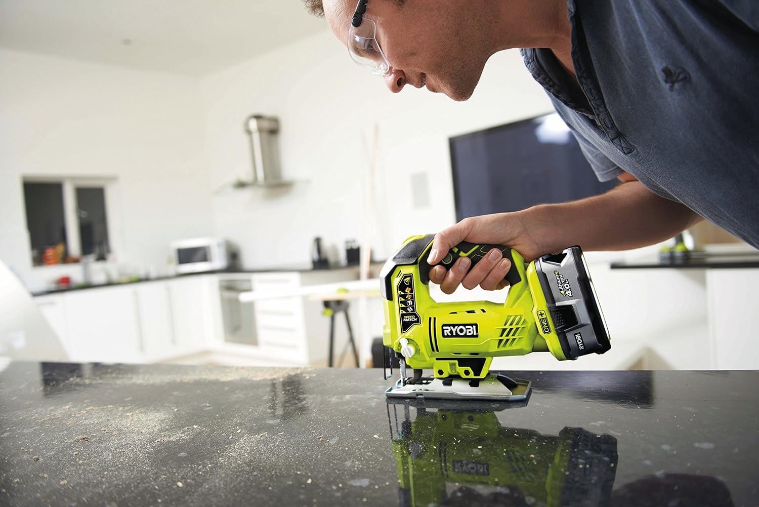 RYOBI 18 V ONE+ Akku-Stichsäge R18JS-0 (max. Schnitttiefe Holz: 101mm, Hublänge 25mm, stufenlose Hubzahlregulierung, werkzeugloser Sägeblattwechsel, inkl. Stichsägeblatt, ohne Akku & Ladegerät) | قیمت یورویی 80€