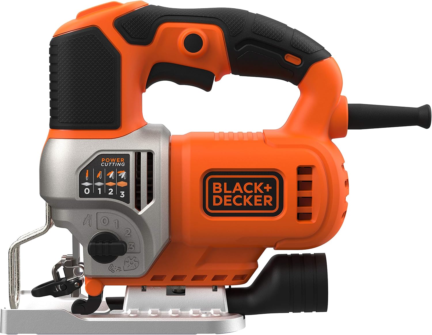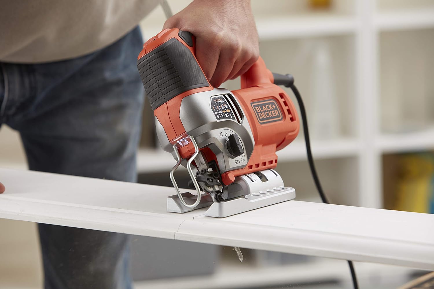Black+Decker Elektronik-Pendelhub-Stichsäge (650 Watt, 19mm Hublänge, max. 90 mm Schnitttiefe, 3 Pendelhubstufen für vielseitigen Einsatz, variable Hubzahl, inkl. 2 Sägeblätter + Koffer) BES610K | قیمت یورویی 78.53€